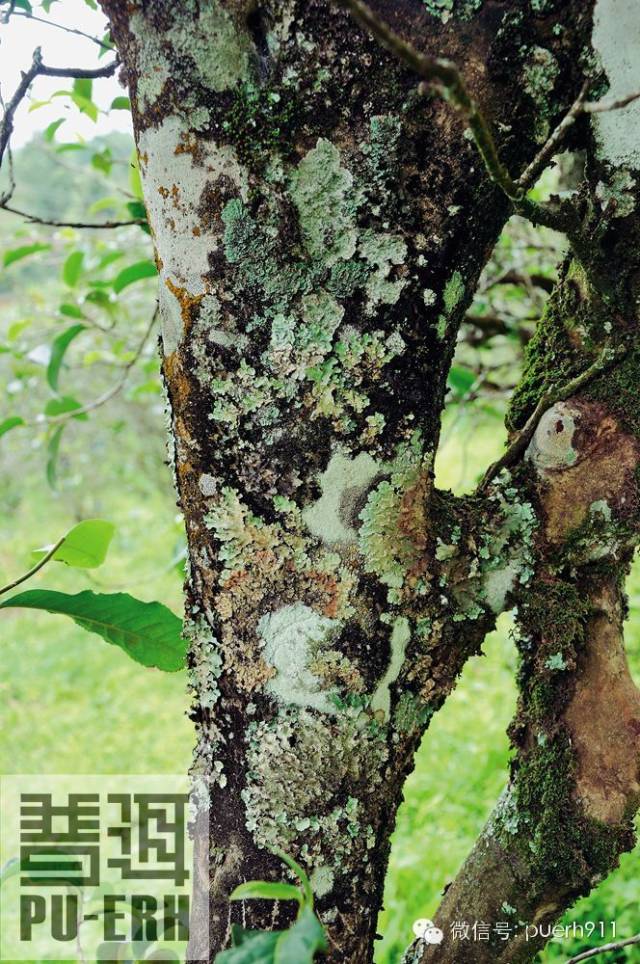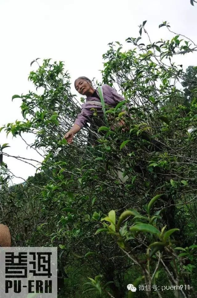 經(jīng)過連日大雨的洗禮,文山村苦竹山社成片的茶林吸足了水分,在清早一抹亮色的映襯下,顯得格外青翠嬌嫩,掛滿露珠的葉片瑩瑩放光。向?qū)дf:“有幾棵百年人工栽培型古茶樹,就躲在幾家農(nóng)戶的圍墻后面,這片古茶園因?yàn)槟甏眠h(yuǎn),早已經(jīng)適應(yīng)了各種自然環(huán)境及病蟲災(zāi)害,完全不必施肥放藥就可以生長得極好”。眼前這棵古茶樹并沒有我想象中的樹皮斑駁、枝老葉黃。反而因?yàn)楣爬?,在粗壯蒼勁的樹身和嶙峋的枝干上,長滿了深綠色的樹苔與寄生植物,它特別的高,目測估計(jì)有9米左右,聽當(dāng)?shù)氐牟柁r(nóng)說這棵樹大約有300年,有可能更久遠(yuǎn)。根脈早已深扎在泥土之中,汲取了百年的天地精華,歷練了百年的雨雪風(fēng)霜,它像一位飽經(jīng)世事滄桑的老者,更像在風(fēng)雨飄搖中屹立的一座燈塔,閃爍著睿智的光芒,指引著茶農(nóng)們的人生。