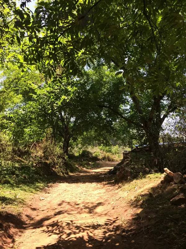 終于,車子翻過山埡口轉(zhuǎn)了個(gè)彎,眼前豁然開朗起來。純凈的陽光里,眼前的整個(gè)山谷被濃郁的綠意幾乎塞得滿滿當(dāng)當(dāng),一個(gè)古樸的小村莊就閃現(xiàn)在半山坡的綠蔭里,村前屋后是成片的古茶林和高大茂盛的核桃樹,山上和箐底則長滿了郁郁蔥蔥的林木。微風(fēng)吹過,清新的空氣在燦燦的陽光中迎面飄來,一時(shí)間心曠神怡。剛才飽受灰塵顛簸摧殘的心肺,頓時(shí)感覺滋潤了許多。