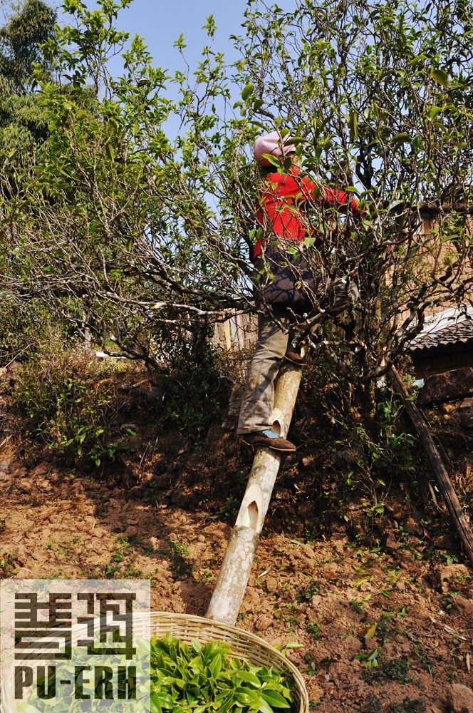 盈盈春光里走進(jìn)村子,時(shí)光仿佛凝聚,人也就開始慵懶起來,不知不覺間放慢了腳步。那些遒勁而蒼老的古茶樹,就成片成片地散布在村子的房前屋后,田頭地角。古茶樹上,有人攀爬著采摘積蓄了一個(gè)秋冬的嫩綠的茶芽,見我們走近,熱情的招呼說:“到家里喝茶嘛!”然后一臉質(zhì)樸的笑。