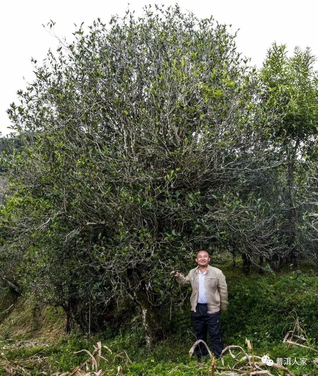 筆者與藤條茶大茶樹