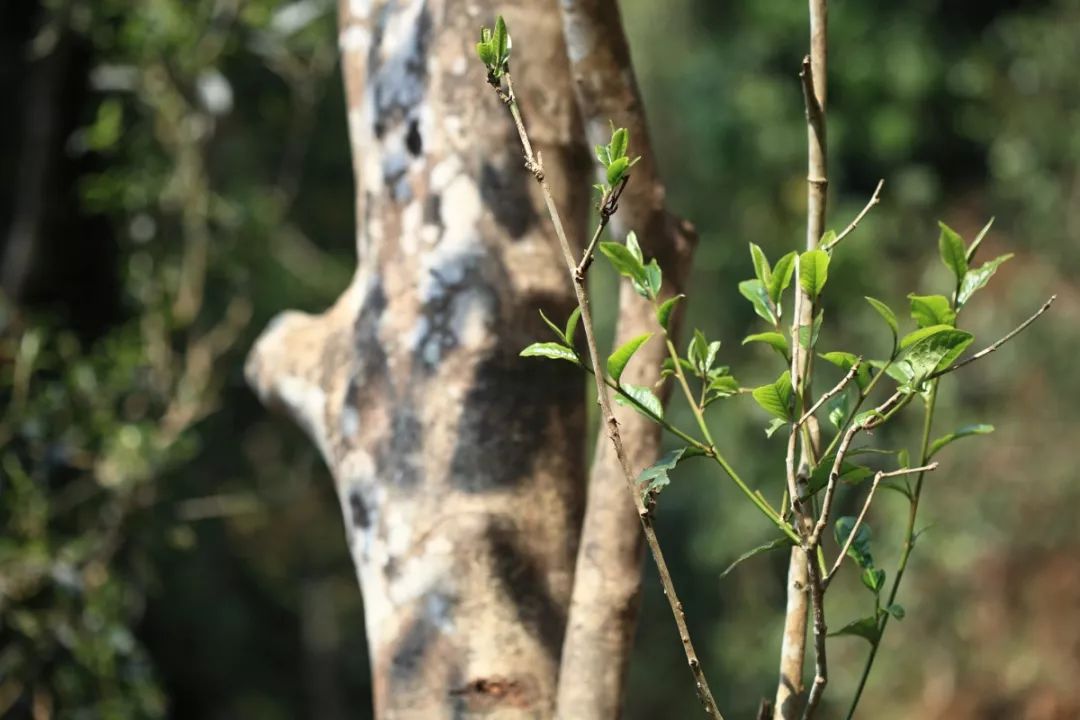 生命,在黑暗絕縫中開(kāi)出最絢爛的花朵。古茶樹(shù)的旺盛生命力世所罕見(jiàn),硬是從斷頭處抽出新枝復(fù)活重生。所以,彎弓有了矮小的小樹(shù)茶。而那些在深山國(guó)有林中的古茶樹(shù),高逾十多米,高大挺直未被矮化,它們就是唐代濮人遺留下的珍貴禮物。