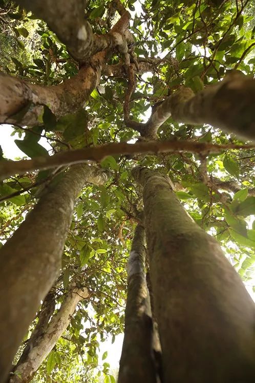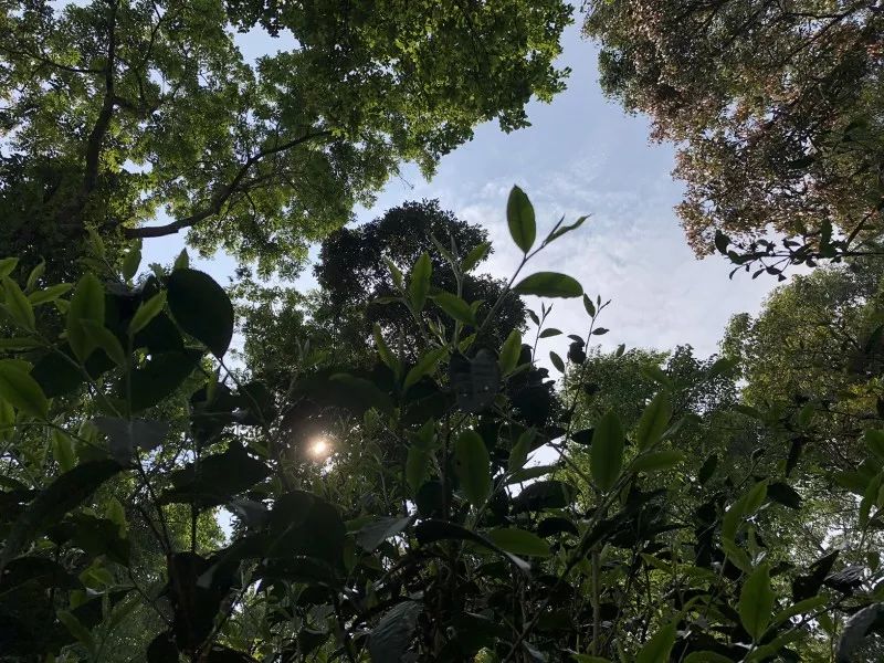 穿過(guò)山林間,在滿眼翠綠之中前行。目之所及只有碧綠的雨林和陽(yáng)光漫射灑落在樹林間的斑駁,耳邊響徹的是蟲鳴鳥叫以及腳踩腐葉的沙沙聲。在此之前我一直認(rèn)為易武的美景都在同慶河,但橄欖坡給了我很大的驚喜,這里漂亮的好像宮崎駿的漫畫,隱匿在森林里的古老茶樹幾乎都有十米以上的高度,雙腳踩在地上的感覺也是松軟而富有彈性的,而我亦被眼前景致吸引,不自覺的放慢了腳步,猛一抬頭,前方同伴的已被樹木草叢湮沒(méi)隱藏。只能加快步伐趕上,邊走邊看,一路交談,與原始森林中古茶樹的親密接觸,讓行路的艱難都轉(zhuǎn)化為心底歡愉。在這猶如仙境一般的雨林里,在都市鋼鐵森林中“退化”的感官會(huì)全面升級(jí)爆發(fā),將平日忽略掉的蟲鳴鳥叫統(tǒng)統(tǒng)找回,仿佛自帶HiFi音響。還有一個(gè)很有趣的現(xiàn)象就是這一秒聽到的聲音,要在很遠(yuǎn)之后才能觸碰到它的源頭,這里是屬于茶樹的自然世界,當(dāng)你越是深入,便越會(huì)懊惱為何沒(méi)有更早發(fā)現(xiàn)這片秘境,一路走下來(lái)身體早已疲憊不堪,但心靈上卻迫切地想要更快的觸摸這片秘境。