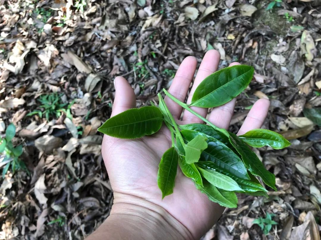 一行人艱難的在若隱若現(xiàn)的山路上穿梭,路途的遙遠(yuǎn)和艱難超出之前的想象。像橄欖坡這樣古人遺留下來(lái)的茶園,距離村寨很遠(yuǎn),遠(yuǎn)離了世俗與塵囂,行走到此會(huì)覺得空氣都仿佛安靜了下來(lái),整片茶地就在原始森林的庇護(hù)下悠閑自然的生長(zhǎng),深吸一口氣,原始森林的氣息溢滿呼吸間,帶著野性的張揚(yáng)和沉郁。不知名的野花隱在草叢中開放,藤類、果木類植物長(zhǎng)滿了野生石斛,野果菌類,青草帶著露水的純粹,這是橄欖坡不為人知的遠(yuǎn)古之美。