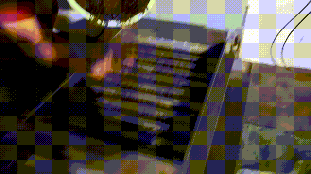 它的工作原理很簡單。將機器預熱到一百度后,開動機器,機器上方帶有凹槽的板面便會來回晃動。