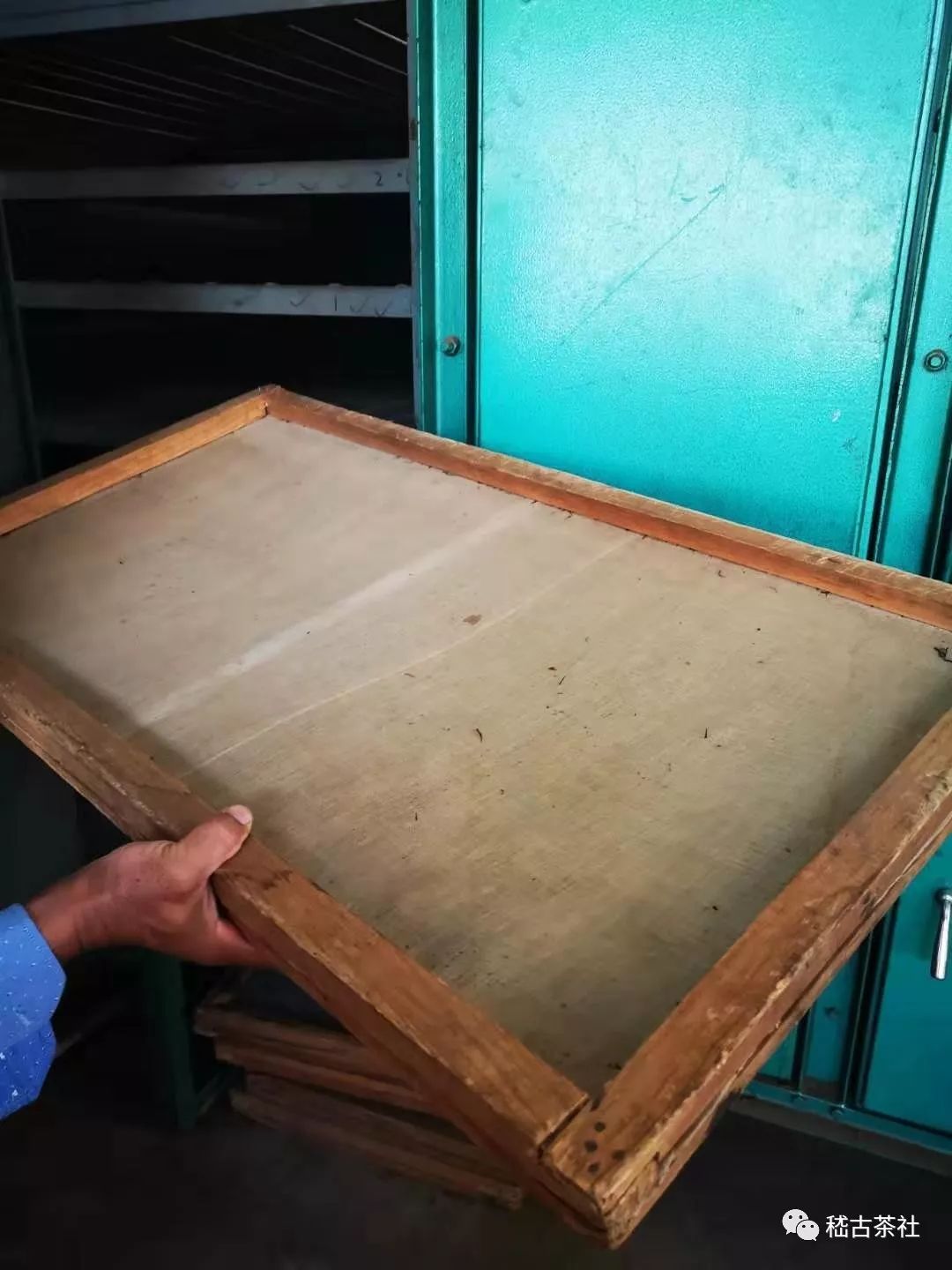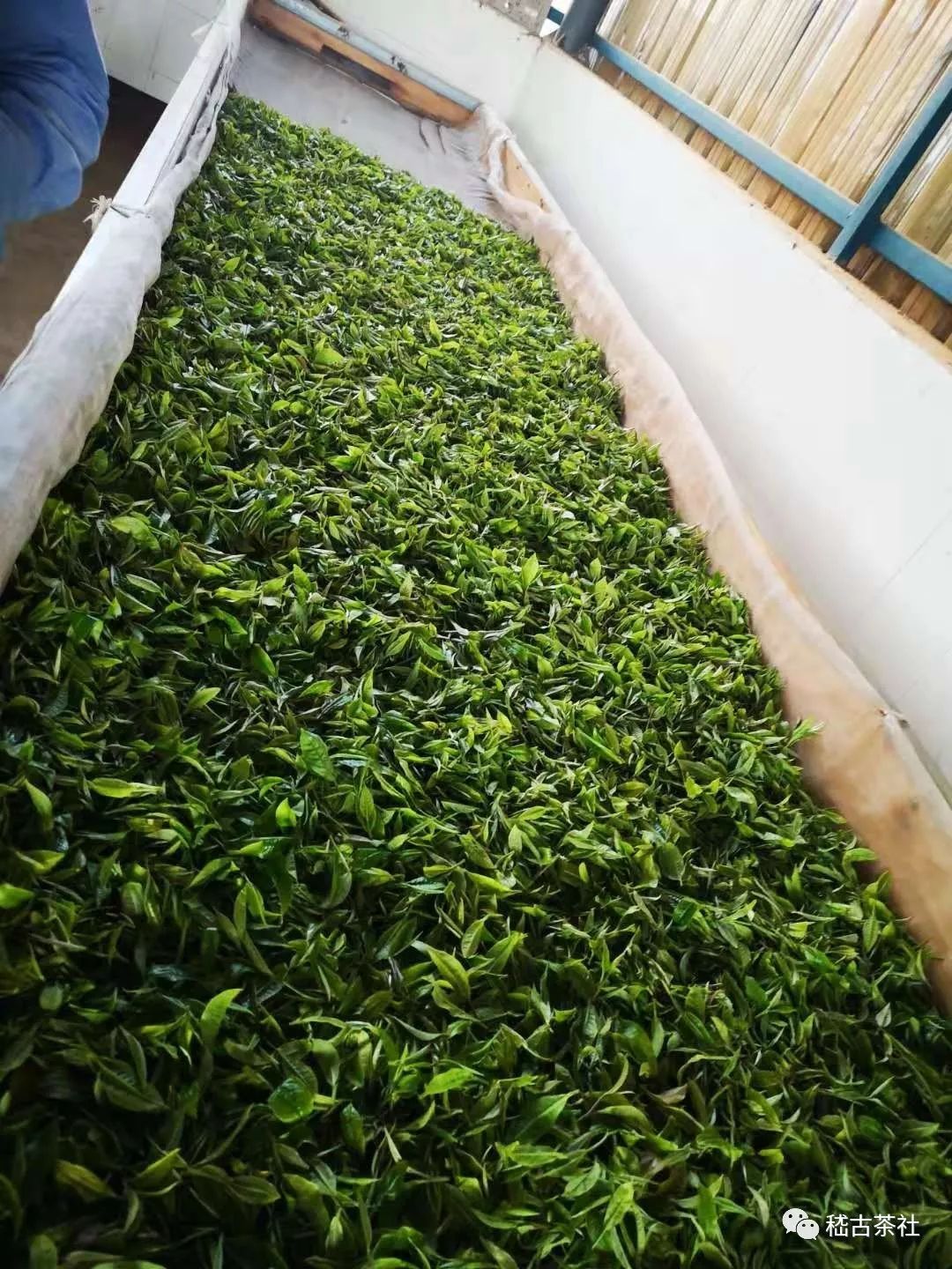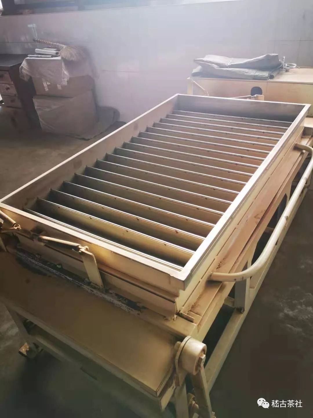 正如圖中所看到的,茶葉被攤放在萎凋機的棉布上,棉布下方有風機持續(xù)鼓風,加快茶葉脫水變軟的速度。