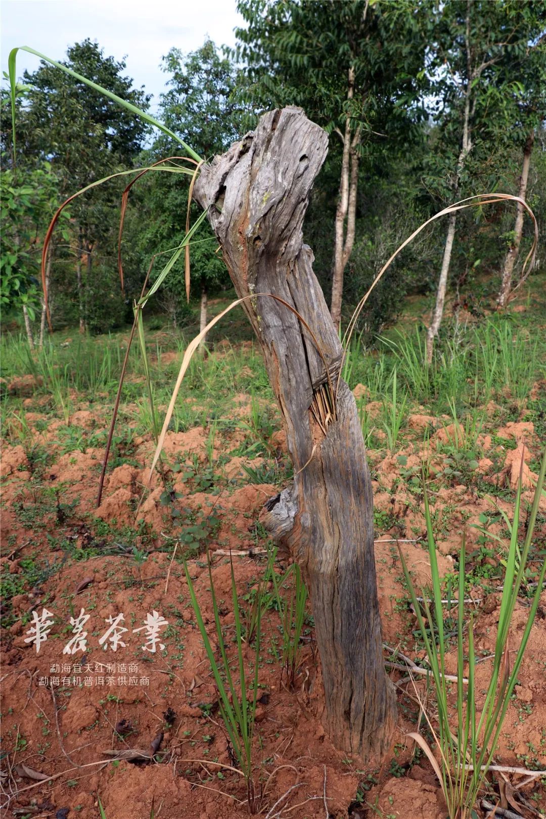 村邊,一棵粗壯的古茶樹溘然長逝,很是惋惜!其遺體雖然在周圍綠意盎然的其他茶樹的襯托下,會顯得格外的沉重與遺憾。但是他直立挺拔的軀干,似乎在告訴我們,他曾經(jīng)是那么的威嚴(yán)與驕傲,就算離開也是不失風(fēng)度的。這樣的樹體和樹齡,如若放到某些山頭,那也是茶樹王的存在了吧?可惜了嘍!