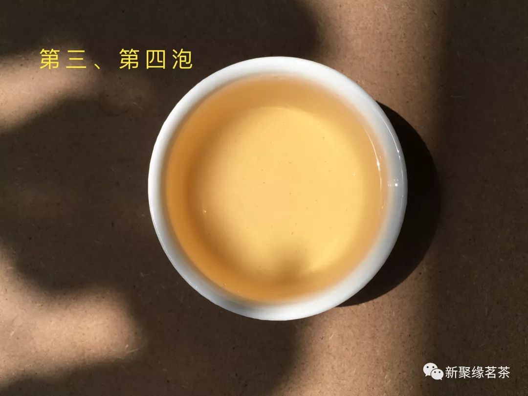 第三、第四泡:湯色黃且透亮,茶湯飽滿圓潤,清甜順滑,生津回甘強(qiáng)烈持久,喉韻較深,口齒留香持久,品飲之后后背發(fā)汗。