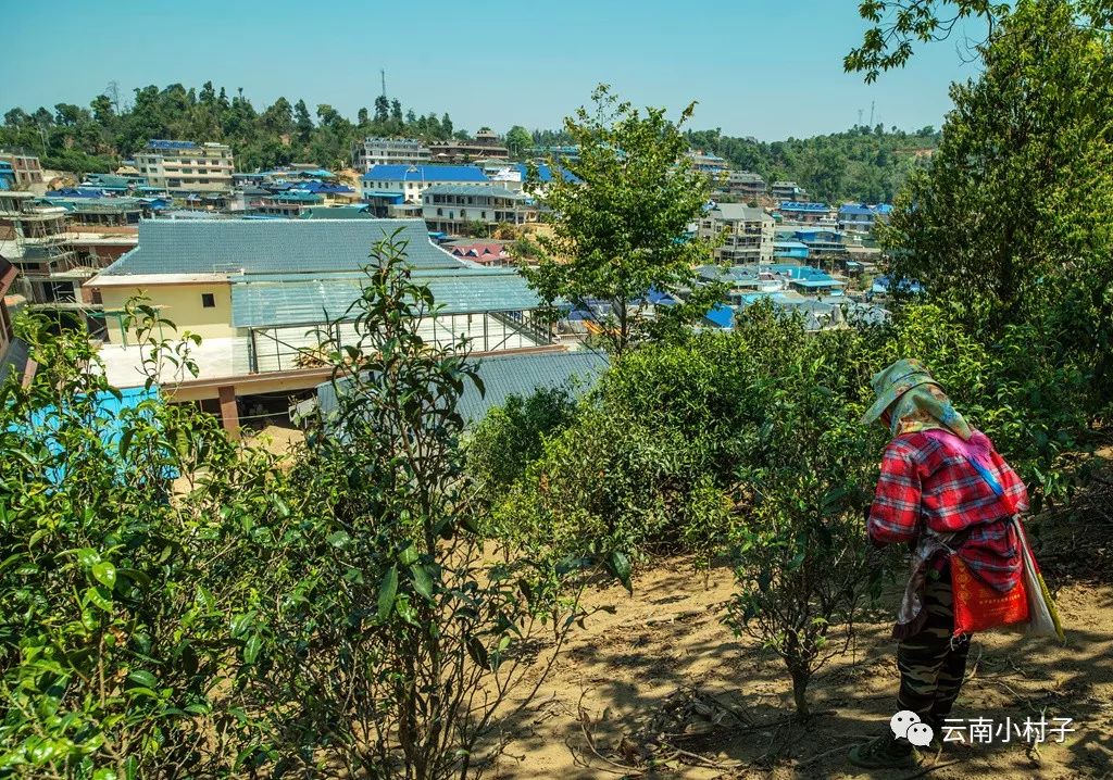 沿著彎曲的山路來到老班章村,整個(gè)村子被茶山所包圍。所有外來車輛不能進(jìn)村,只能乘觀光電瓶車。村里早已不見傳統(tǒng)愛伲人的竹樓,都是各種風(fēng)格的小洋樓,戶戶院里標(biāo)配4輛車,越野、轎車、皮卡、拖拉機(jī)。