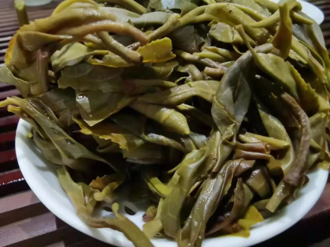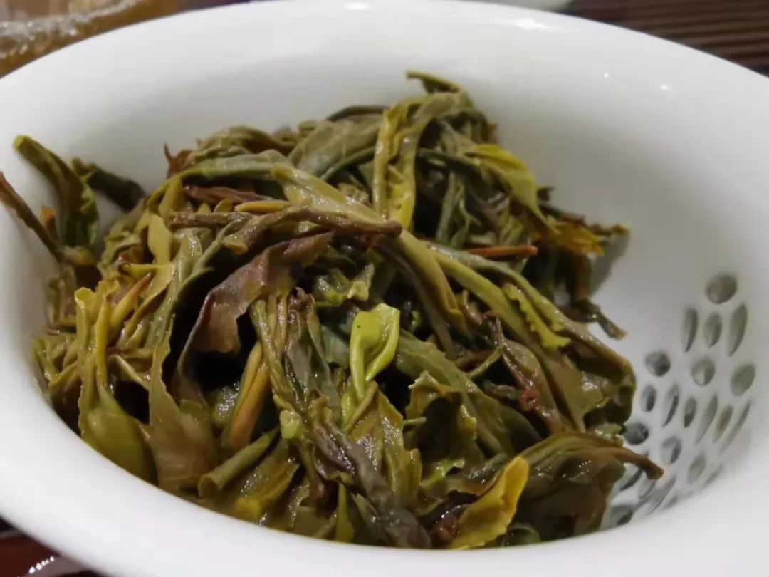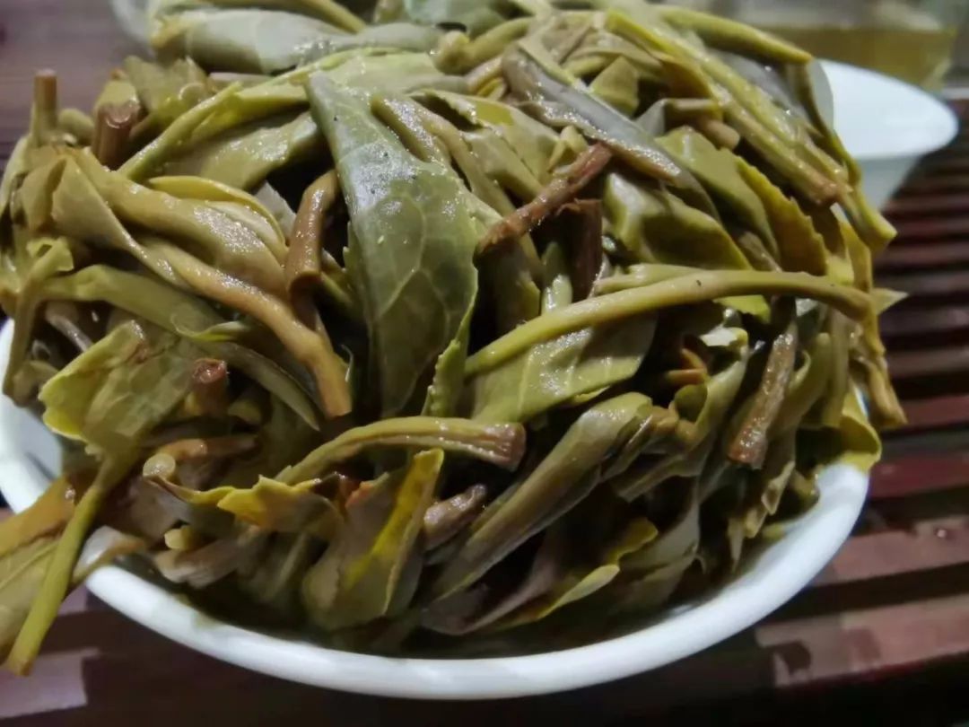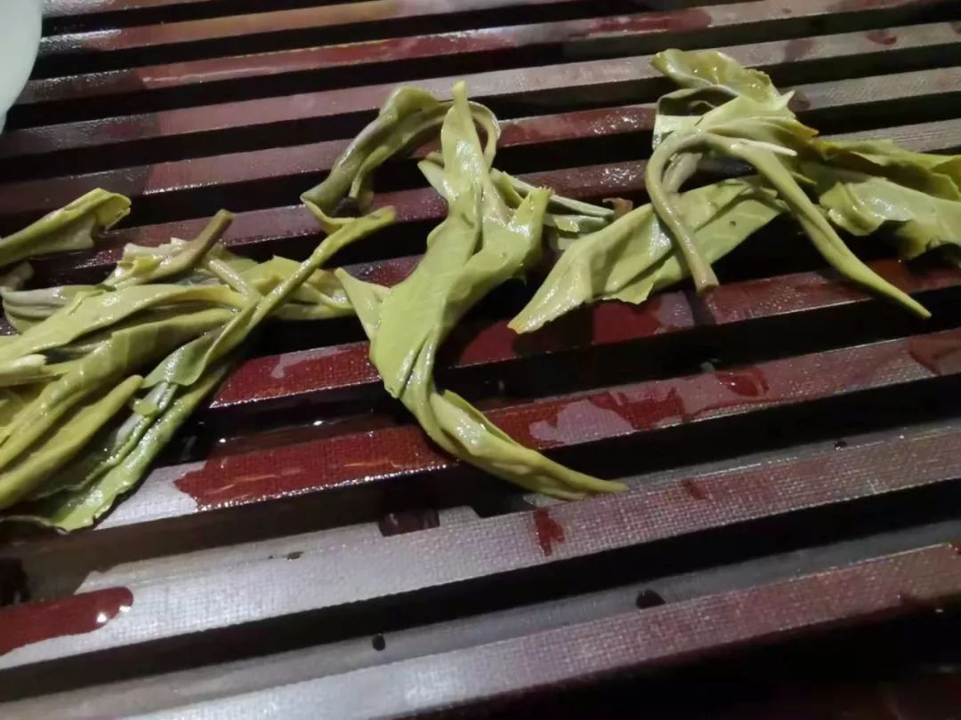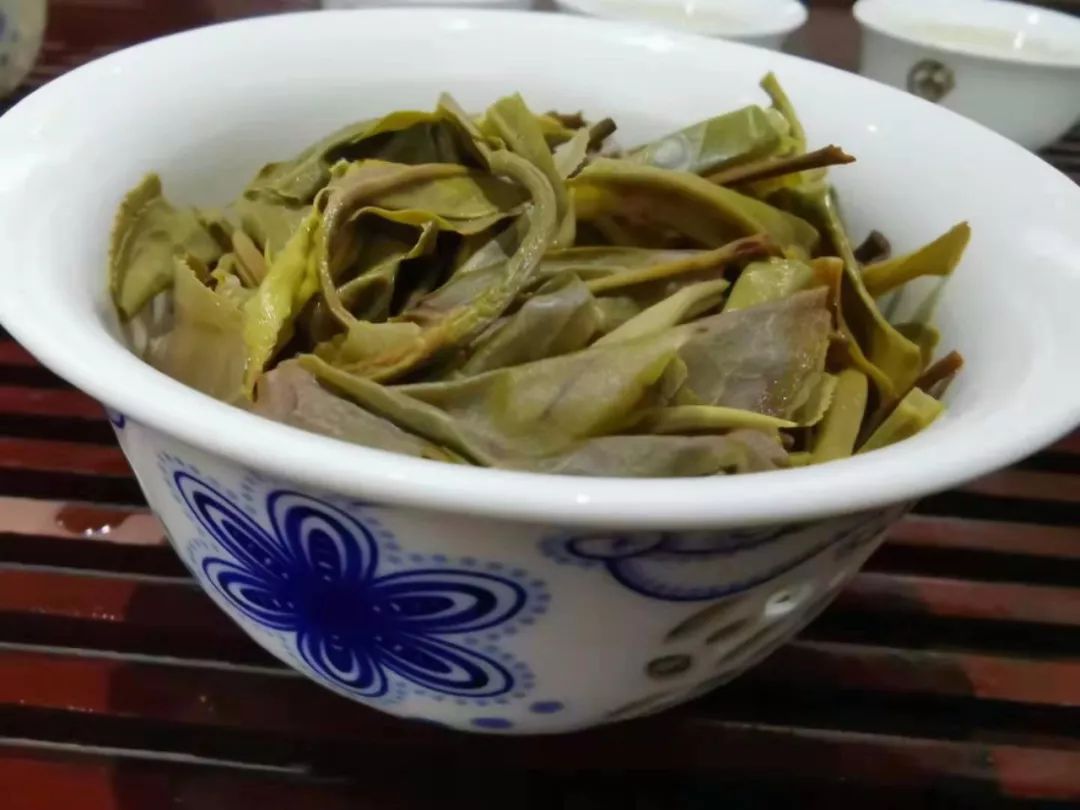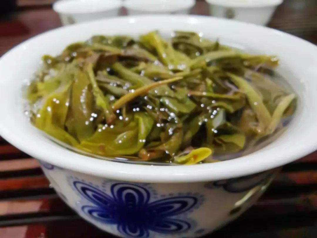 第二泡開始變化,古樹韻味帶著花香,有些小小蜜感。茶湯苦味不變,澀感基本無(wú),聞茶底花香顯,杯底古樹味重,花香比第一泡多起來(lái)。