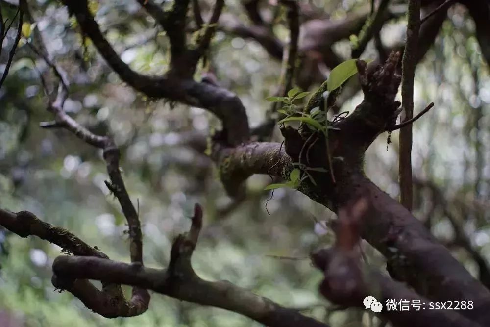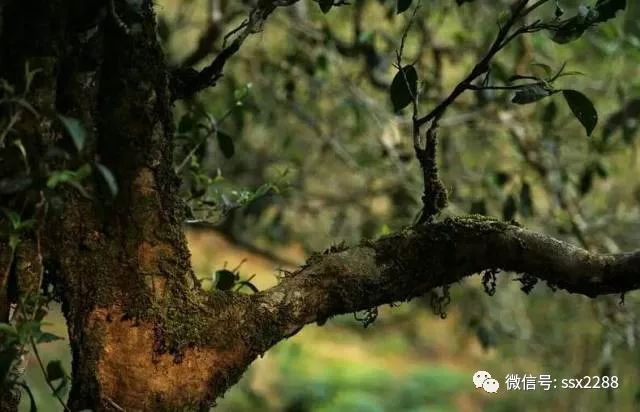 班盆古茶樹相對(duì)其它茶樹而言,樹干粗壯,茶樹上寄生著蕨類植物和囊殼類植物,這標(biāo)志著班盆古茶樹有著悠久的歷史,也說(shuō)明了當(dāng)?shù)卮迕駥?duì)古茶園的管理十分重視。