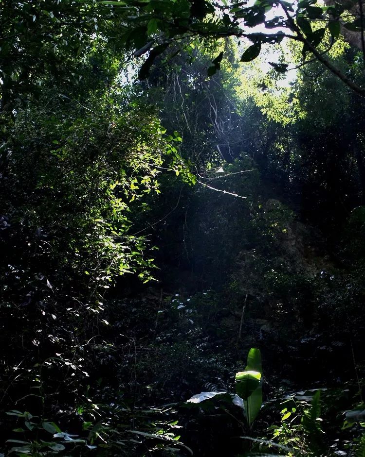 進白溪谷時穿長褲的要把褲管扎緊,其他人要用塑料袋把腿纏起來,防蚊蟲,這里的蚊子咬了人體質(zhì)好的一個星期才能消腫,一般體質(zhì)不好說。越往腹地走越難行,開啟四驅(qū)模式,手腳并用,覺得回到森林腹地的我又退化了。帶我們一起進去的人都覺得太難走了,不想再走第二次,帶上干糧,直接就背著茶簍到了就采回來了,且喝且行且珍惜不是一句空話!