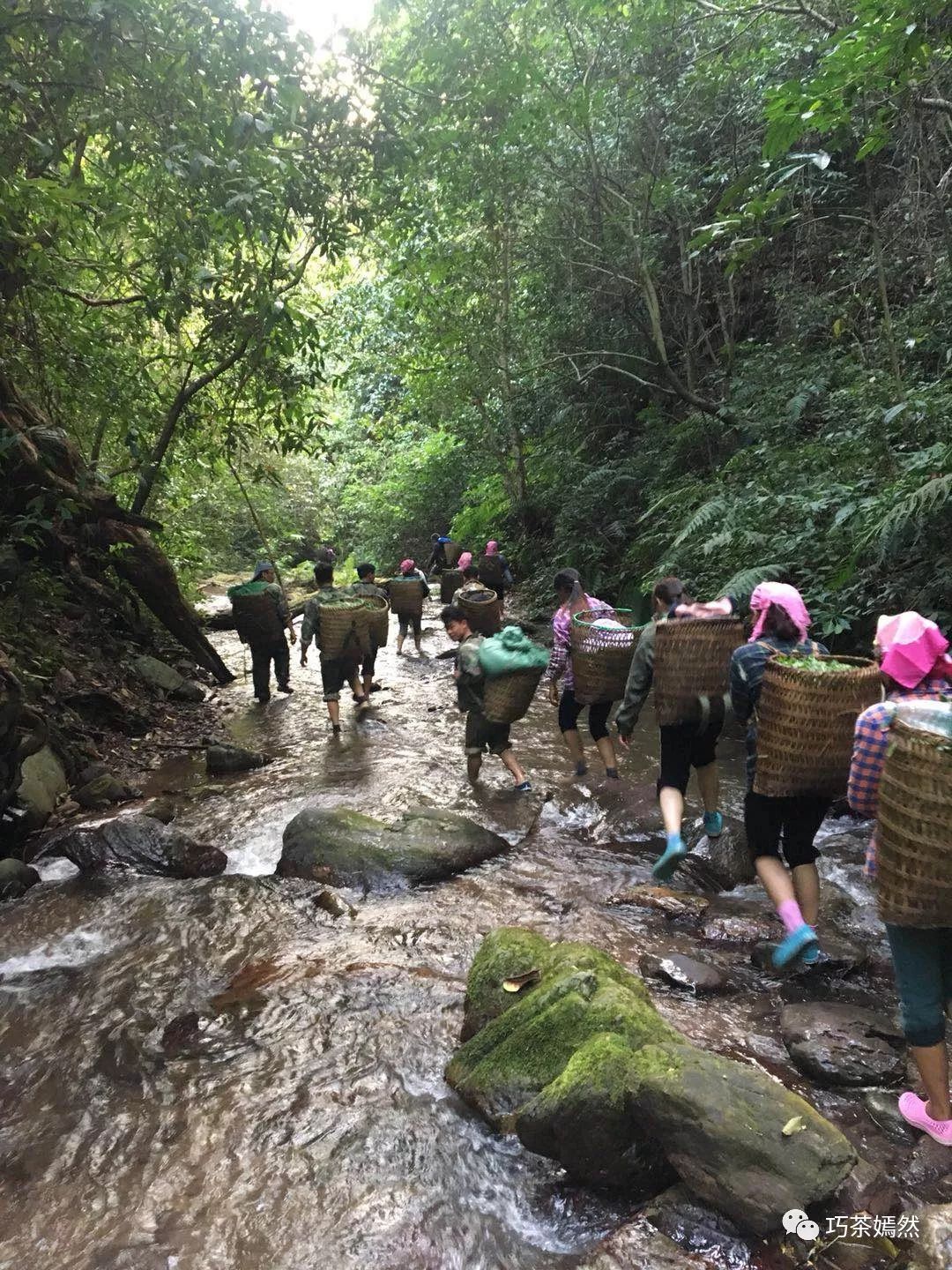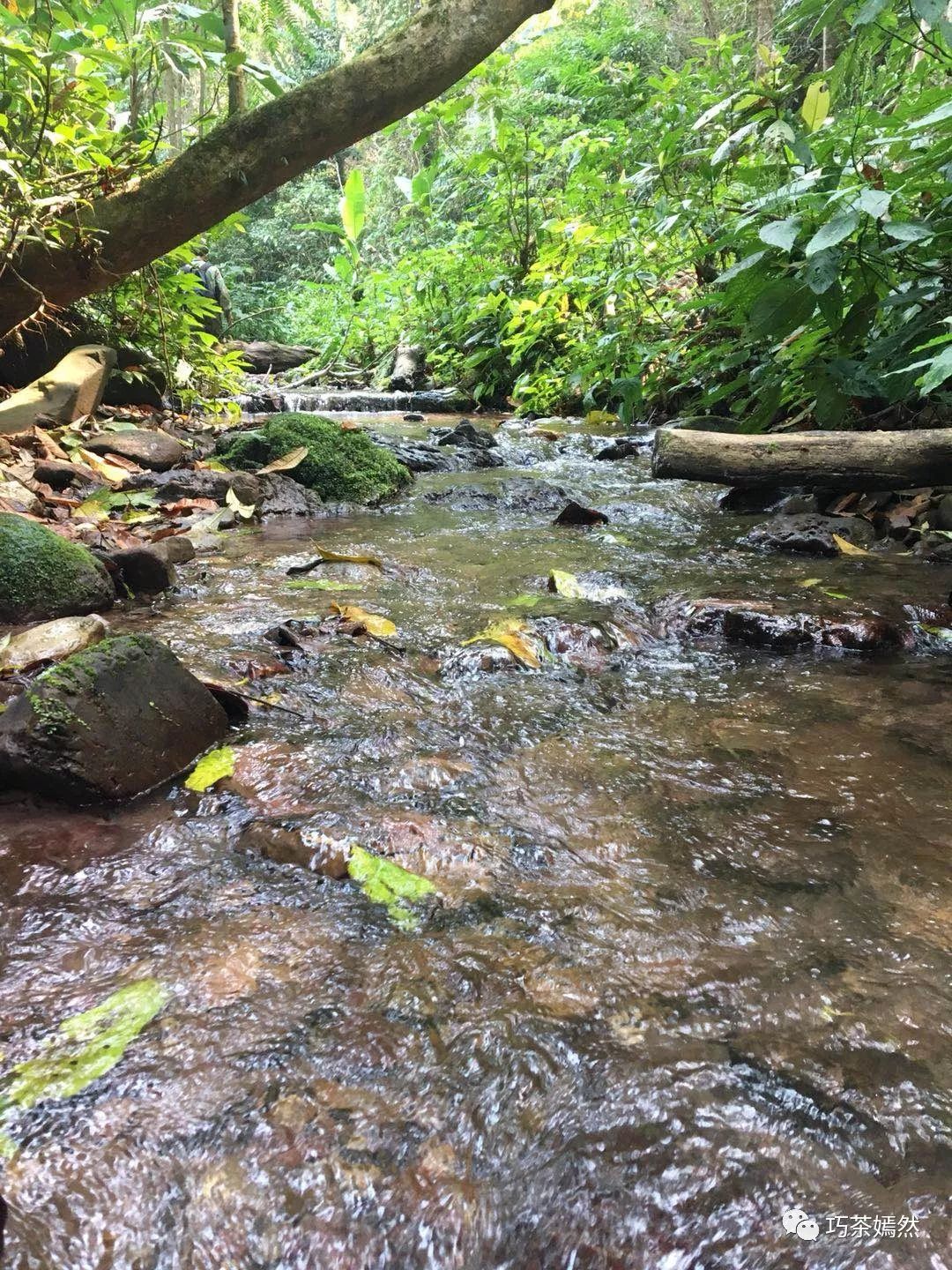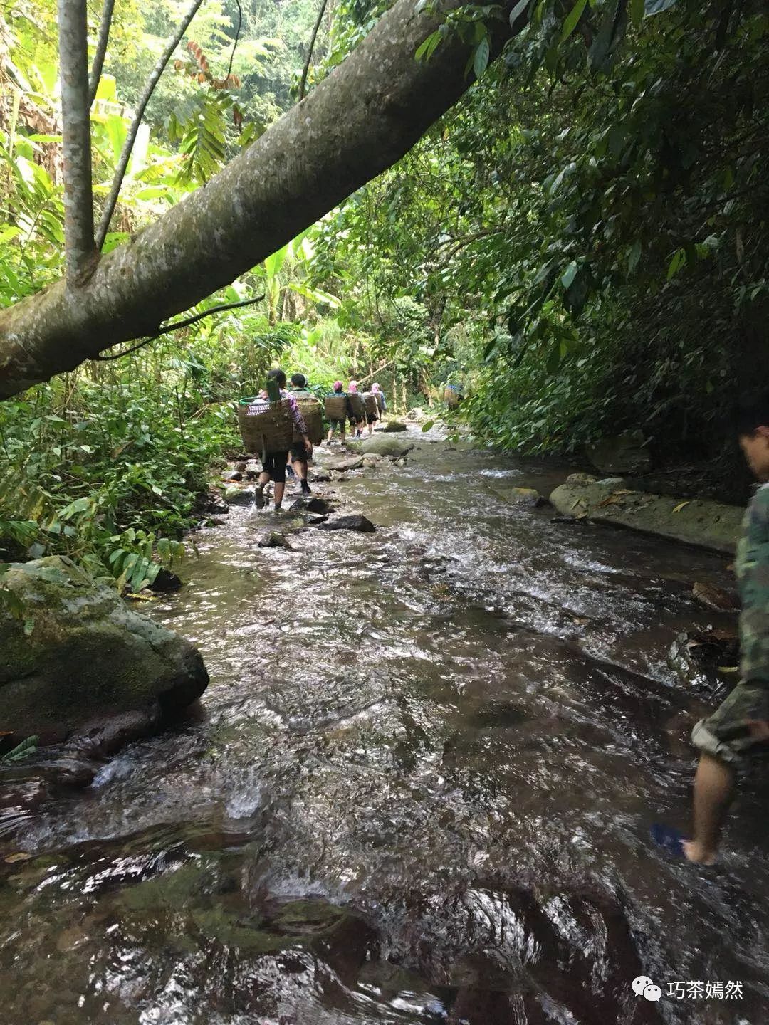 完美的生態(tài),是一款好茶的必備因素。銅箐河保有目前易武各大茶山中最完整的生態(tài)系統(tǒng),山清水秀茶美!想要進到銅箐河茶園,只有逆水而行,攀巖而過,沒有一條完整的小路,正所謂:“溯洄從之,道阻且長,道阻且躋,道阻且右”。茶道難,但沒有難于上青天,一路美景相伴,心生愉快。