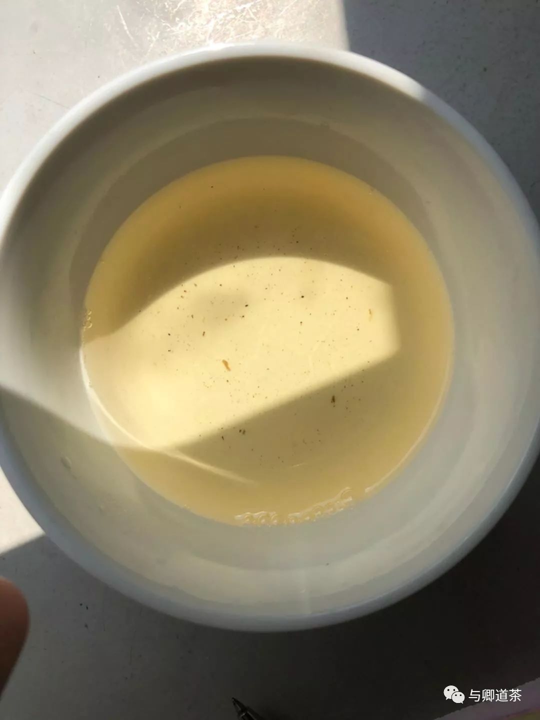 茶湯轉橙黃,透亮,點點蜜香,苦感稍微明顯了點,澀感快速上升,布局整個舌面,可以化開,但是相對較慢,回甘生津較慢