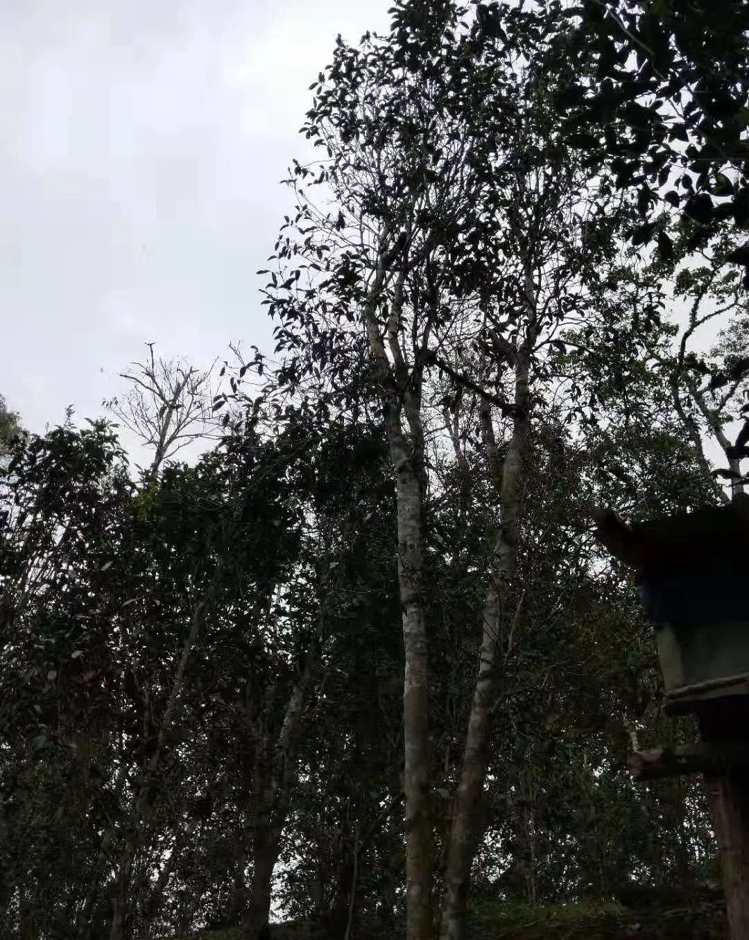最大的幾十株栽種在屋后的地坎上,樹齡有近千年,其中一棵高11.7米,根部最大徑圍2.74米,是目前漫灣古茶山中發(fā)現(xiàn)的最大的栽培型古茶樹,枝繁葉茂,樹干蒼勁彎曲,猶如蛟龍出海,被稱為