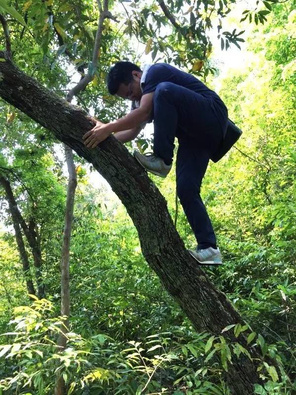 行程中,老廖說(shuō)他從小就愛(ài)去山中爬到樹(shù)上掏鳥(niǎo)窩,很多年沒(méi)有爬過(guò)樹(shù)的他,風(fēng)采不減當(dāng)年。話剛說(shuō)完不久,他就選中一顆大樹(shù),向大家展示著他的攀爬技巧。