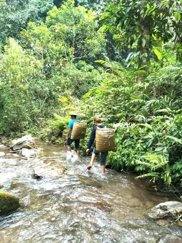 聽(tīng)說(shuō)那里茶樹(shù)生長(zhǎng)在人跡罕至的地方,長(zhǎng)得非常分散,需要尋著水源逆流而上,到一處有瀑布的地方,攀上瀑布的巖壁到達(dá)銅箐河的上游,再翻過(guò)一處座大山,就到百花潭古樹(shù)茶園。