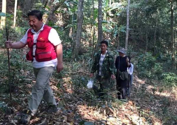 攀過(guò)巖壁到達(dá)銅箐河的源頭,前面有一座大山,我們翻過(guò)這坐大山,終于到達(dá)百花潭古茶園。
