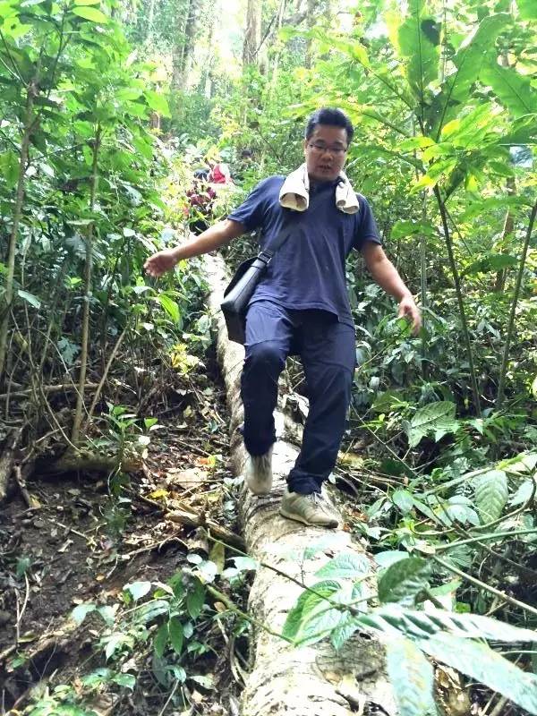身體非常靈活的老廖,率隊(duì)在獨(dú)木上前行。