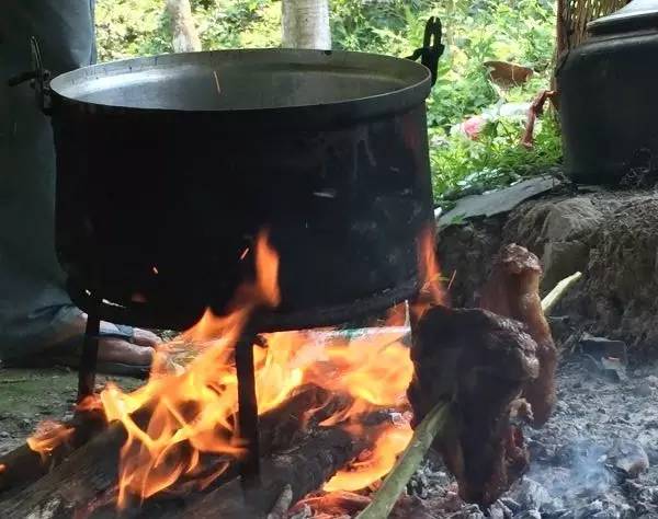 從山林間找來(lái)柴火和野菜,拿出行囊中的食材開(kāi)始埋鍋造飯,烤肉、臘腸與野菜的香氣蔓延開(kāi)來(lái),調(diào)動(dòng)大家的食欲,我們狼吞虎噎的吃著,想象曾經(jīng)居住在這片瑤區(qū)遠(yuǎn)古先民生活的景象,是否如我們這般。