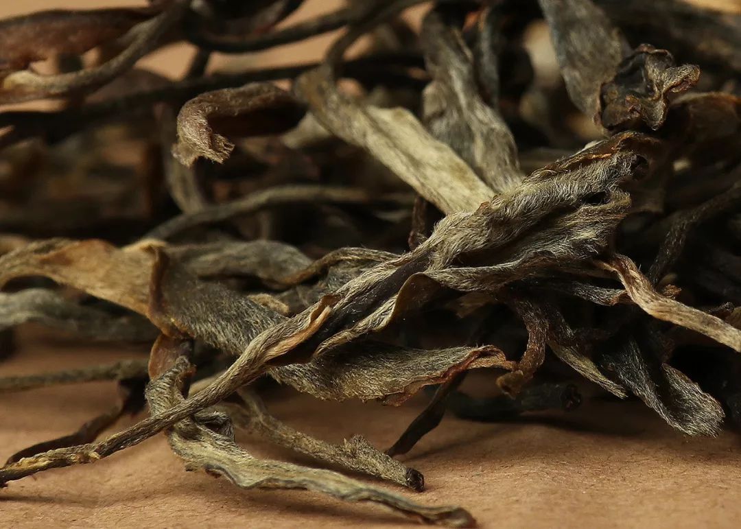 干茶條索黝黑瘦長,革質(zhì)感明顯,細聞有略微木質(zhì)香。