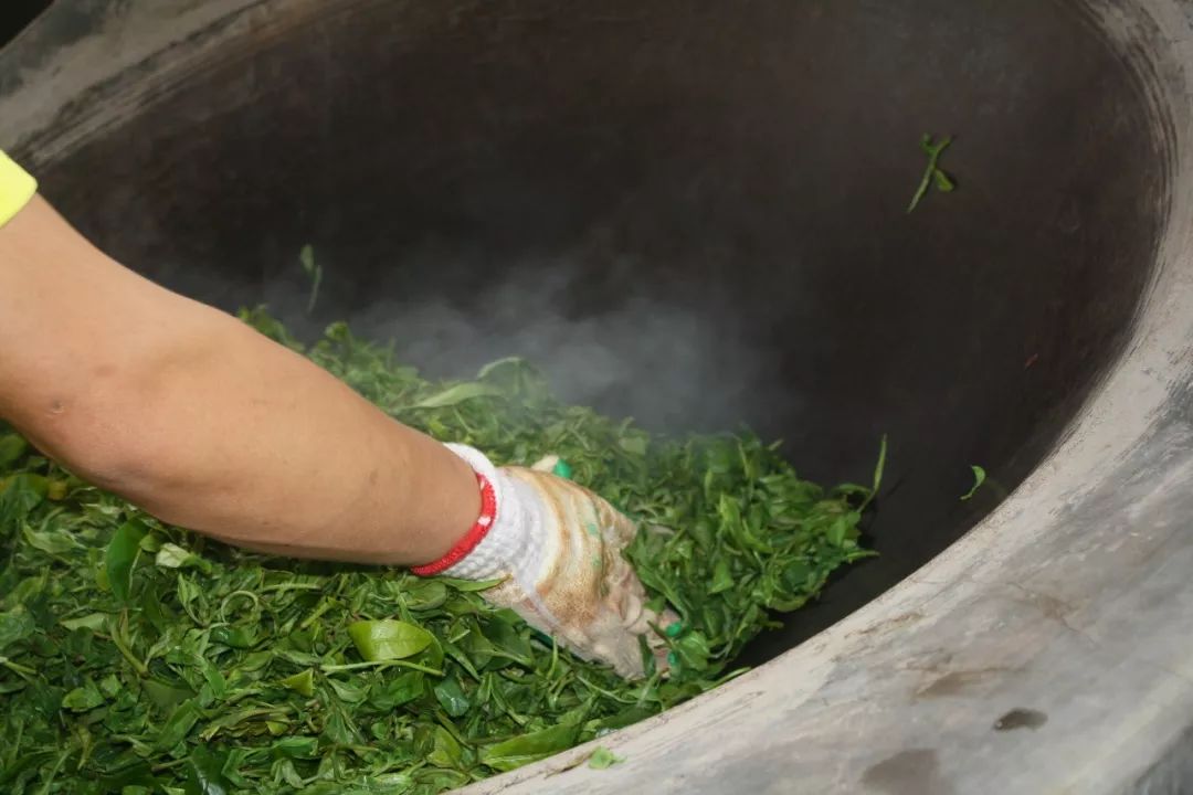 易江號天門山高桿古樹茶請老師傅采用古法殺青揉曬,石墨蒸壓成型,完美保留了茶葉中酶類活性物質(zhì)的生命,也是為了長期存放”越陳越香“保存了潛在的活力。