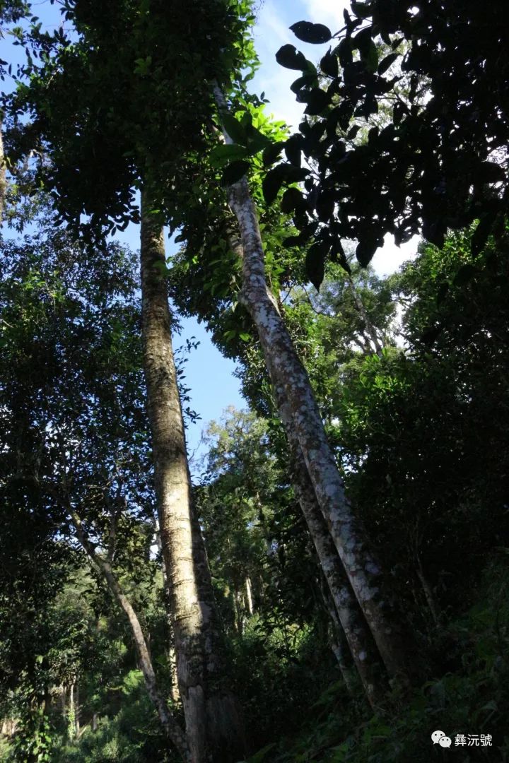 跌跌撞撞抵達(dá)后小坐歇息片刻步行攀爬幾十米,一尊尊筆直挺拔的古茶樹陸續(xù)映入眼簾,東零西落的矗立于這原始叢林的懷抱中,歷經(jīng)千百余載汲取天地自供自給的給養(yǎng)使得它巍峨高大,最為高大的30多米,樹木的粗壯高大程度以及生態(tài)環(huán)境絲毫不遜色于與它近鄰大名鼎鼎的薄荷塘。