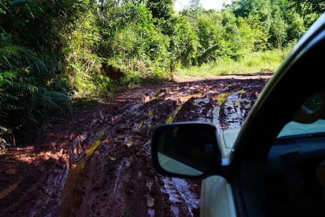 去年秋茶,洪普號團隊前往天門山時一路泥濘不堪,車輪都被厚厚的泥土所覆蓋,到了馬叭寨想去茶園自然就要倚仗摩托車,如果沒有熟悉路途的茶農(nóng)帶著可能就到老撾去了,就算經(jīng)常入山的茶農(nóng)騎著摩托車也極為小心翼翼,一失足可能就會掉下懸崖。