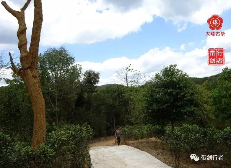 最大的幾十株栽種在屋后的地坎上,樹齡有近千年,其中一棵高11.7米,根部最大徑圍2.74米,是目前漫灣古茶山中發(fā)現(xiàn)的最大的栽培型古茶樹,枝繁葉茂,樹干蒼勁彎曲,猶如蛟龍出海,被稱為