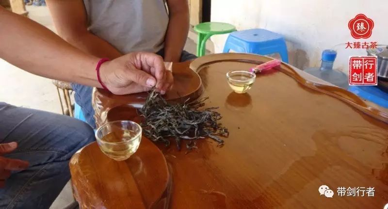 在一家人處喝茶,剛好前面的高山寨的人也在那里喝茶。主人說最近只有這么小小袋古樹。泡得有點淡了。沒喝過什么味道來。但大家都知道這些茶價高量少。不好浪費人家的茶葉就沒再開泡。