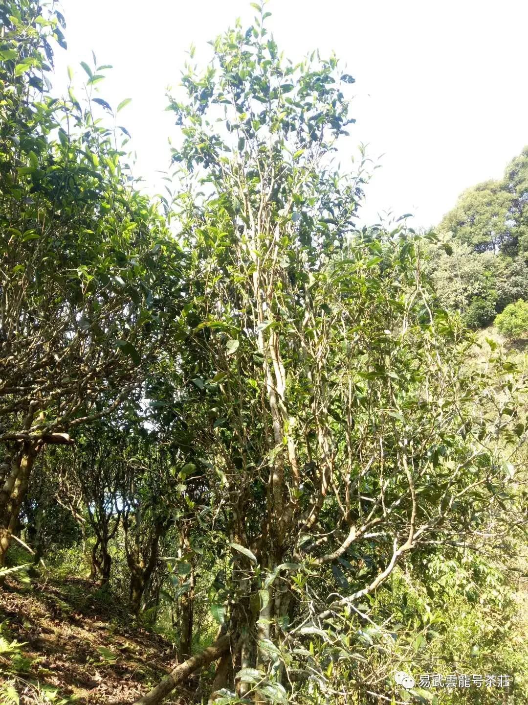 最大的幾十株栽種在屋后的地坎上,樹(shù)齡有近千年,其中一棵高11.7米,根部最大徑圍2.74米,是目前漫灣古茶山中發(fā)現(xiàn)的最大的栽培型古茶樹(shù),枝繁葉茂,樹(shù)干蒼勁彎曲,猶如蛟龍出海,被稱為
