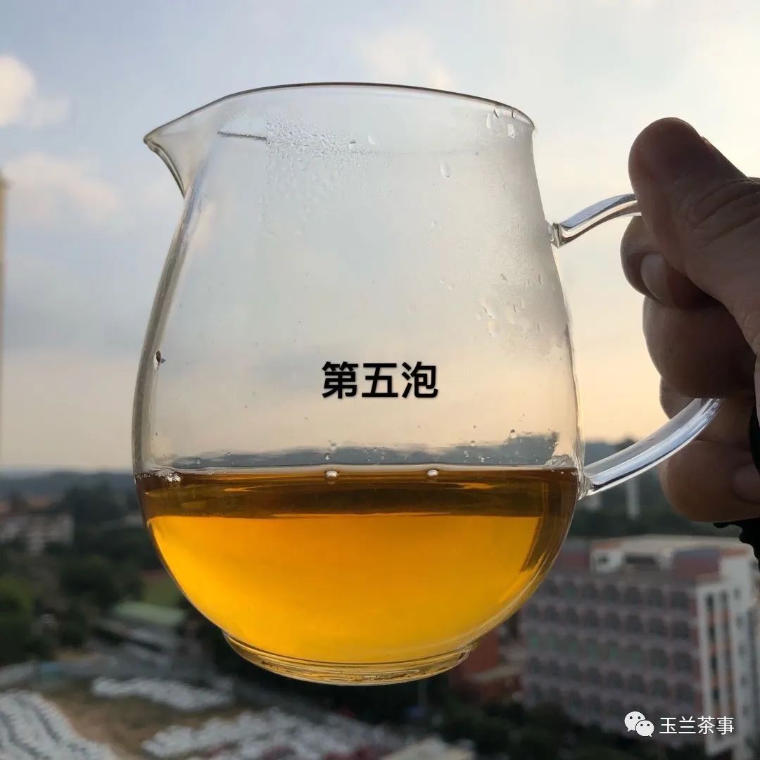 茶具慣例陶瓷蓋碗、玻璃公道、玻璃杯、陶壺煮過濾水,前四泡5秒出湯,第五、第六泡各悶1分鐘。