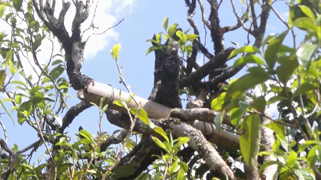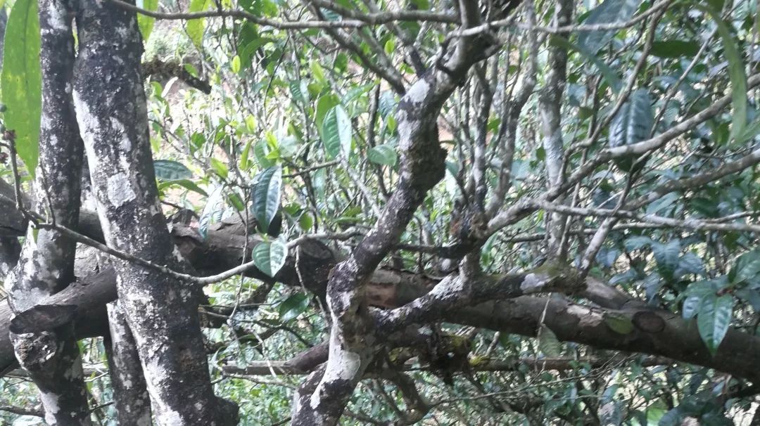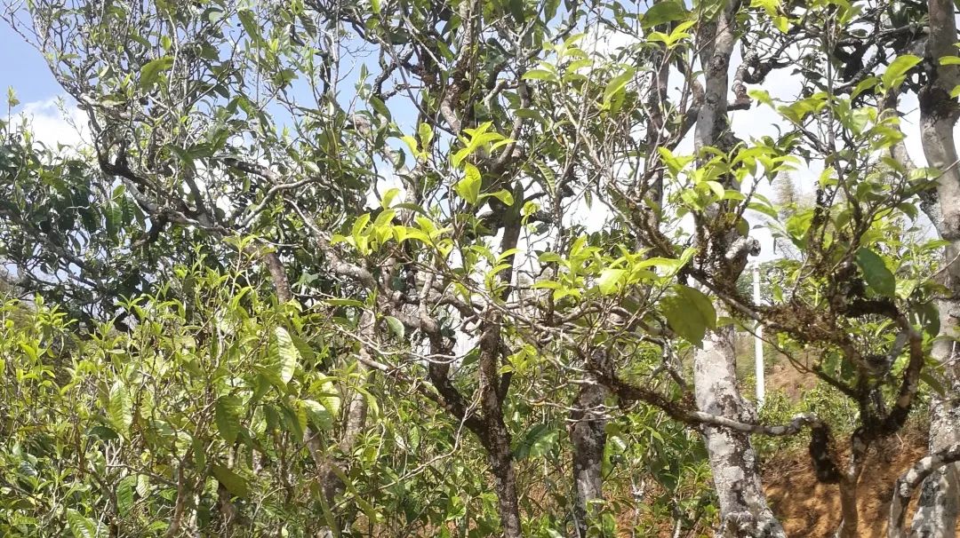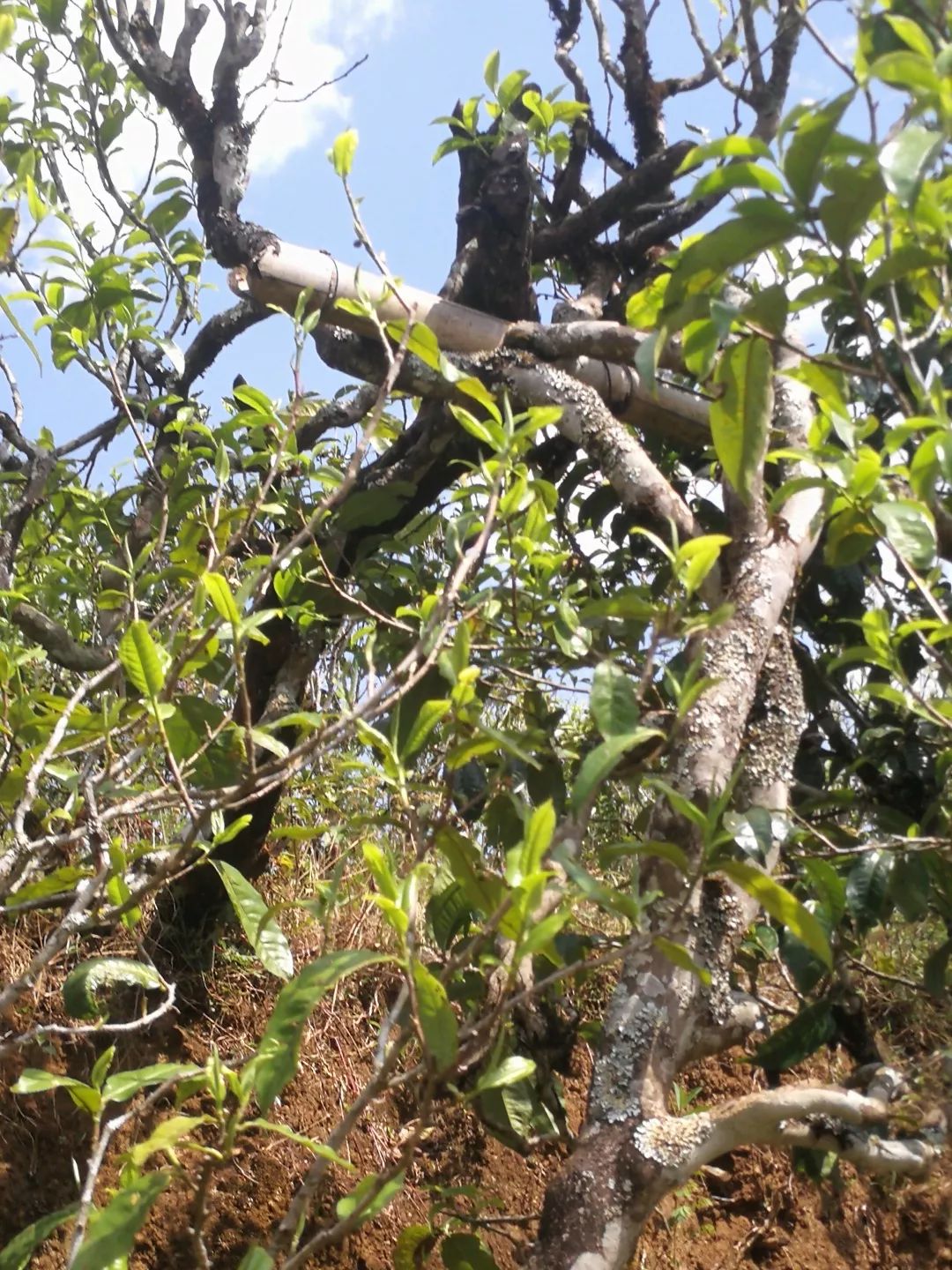 勐庫東半山以藤條茶聞名遐邇,那賽古茶樹很有特點(diǎn),有傳統(tǒng)古茶樹蒼勁挺拔的主干,又融合了東半山藤條茶的形態(tài),茶樹或多或少都有藤條。