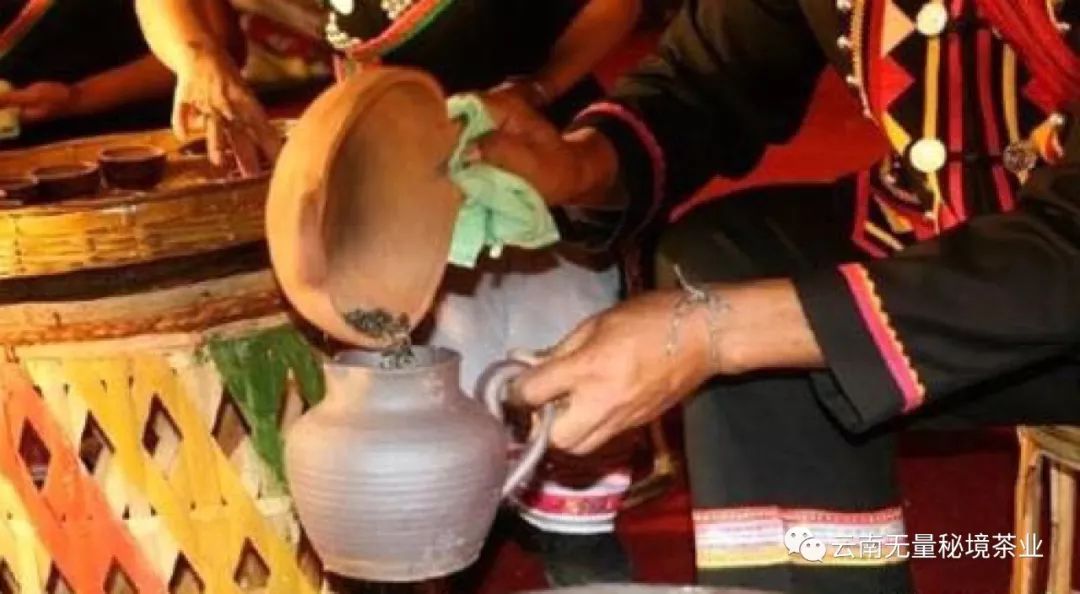 在當(dāng)?shù)兀R鄧人喝茶很講究,定要用銅壺?zé)猩饺?,然后把曬青好的茶葉放在土罐中,用火塘里燃著的木柴火炭上慢慢烤黃烤香,火候最佳時,再把滾漲的開水一傾而入。褐紅色的茶湯噗噗滾漲,茶香立馬撲鼻而來,飲一口,甘甜的回味馬上就來。用現(xiàn)代的電磁爐、液化灶或是煤炭火是絕對泡不出那味道的,總是缺著些說不上的滋味。要是有數(shù)位知已好友一起圍坐在火塘邊,一邊烤茶泡茶,一邊喝茶聊天,那其中的滋味更加其樂無窮。您一杯我一句,說說黨和政府有什么好政策、發(fā)家致富有什么好門路、東家長西家短,說不盡、道不完,一個整夜也就過去了。