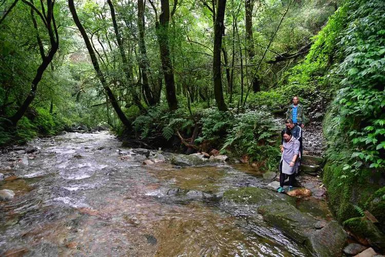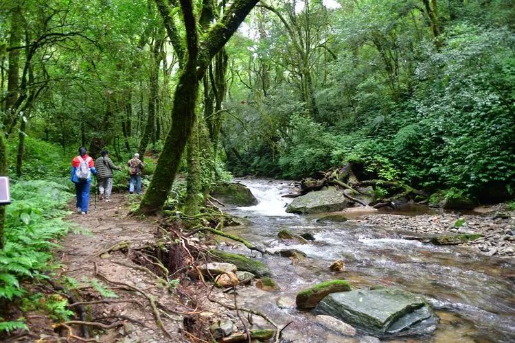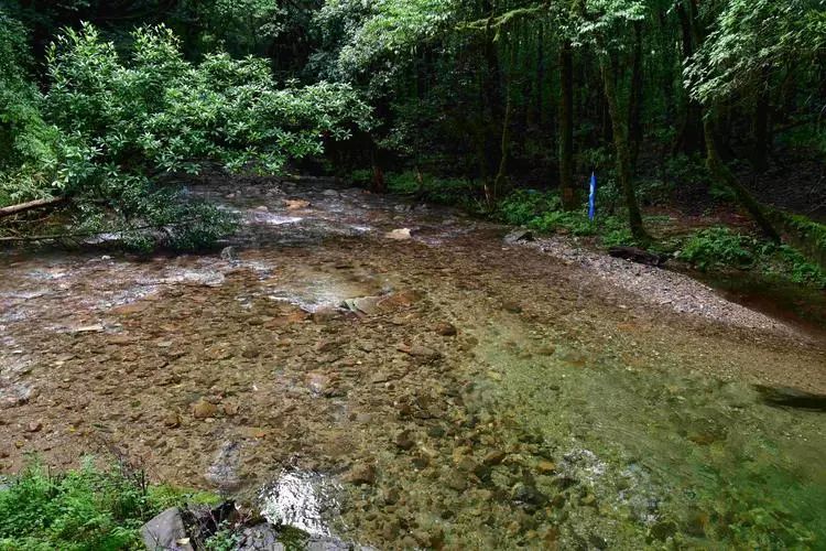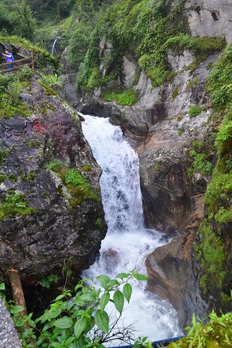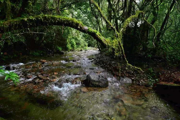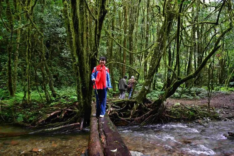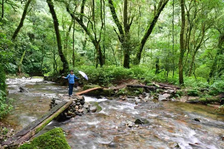 沿途的崇山峻嶺中流淌著許多清澈見底的溪流,溪流中無數(shù)的跌水、碧潭、木橋,與周圍的密林、山花相映成趣,美麗動(dòng)人,構(gòu)成一幅幅山野水碧、綺麗多姿的原始生態(tài)。