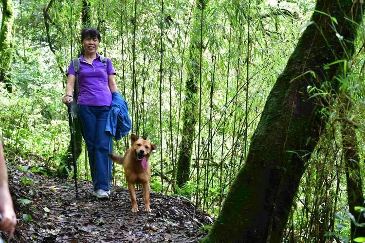 管護(hù)點(diǎn)的忠狗阿黃,來到木橋中間迎接我們,并一路伴隨,帶來了許多溫馨和樂趣。