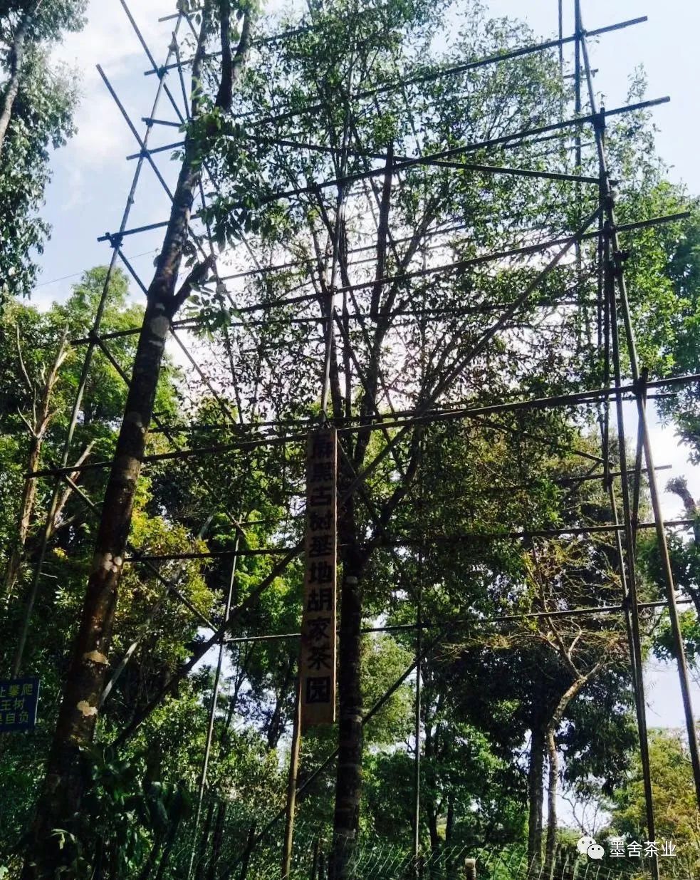 最大的幾十株栽種在屋后的地坎上,樹齡有近千年,其中一棵高11.7米,根部最大徑圍2.74米,是目前漫灣古茶山中發(fā)現(xiàn)的最大的栽培型古茶樹,枝繁葉茂,樹干蒼勁彎曲,猶如蛟龍出海,被稱為