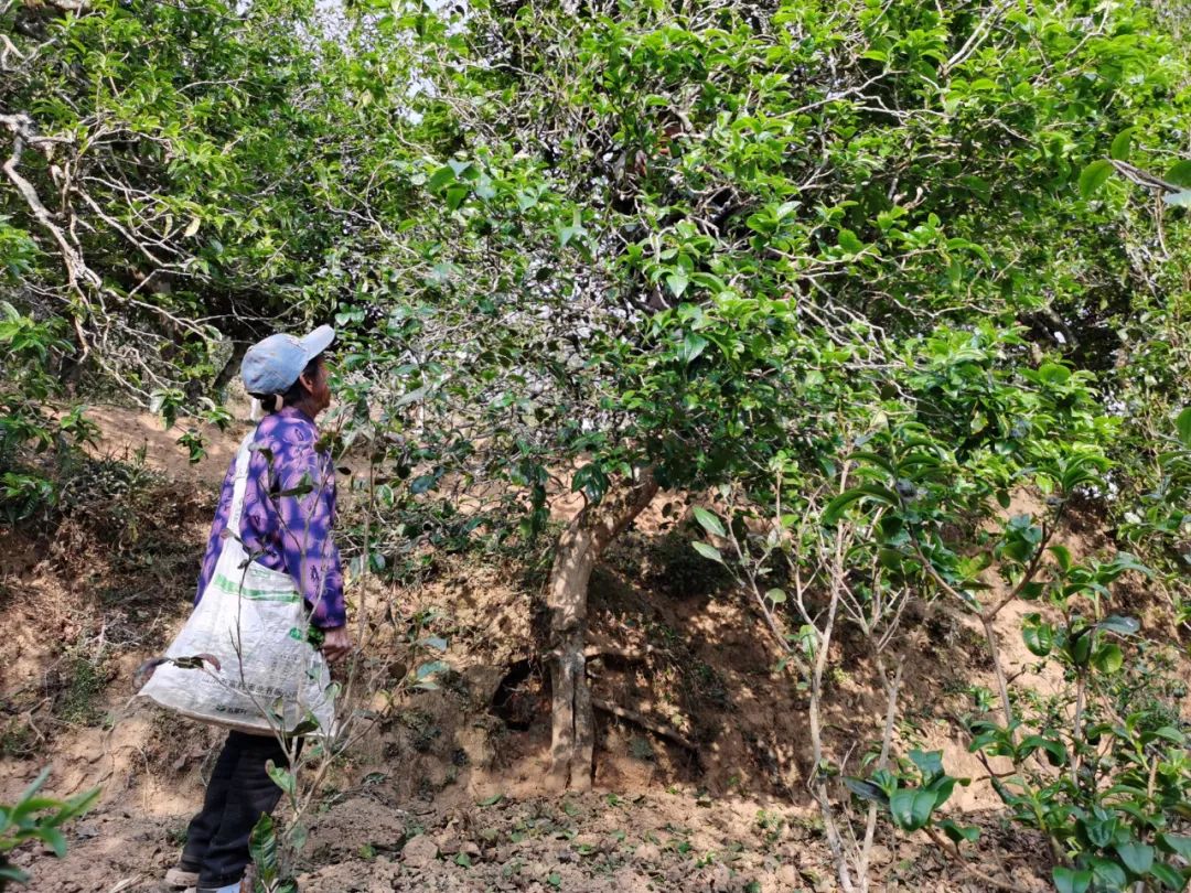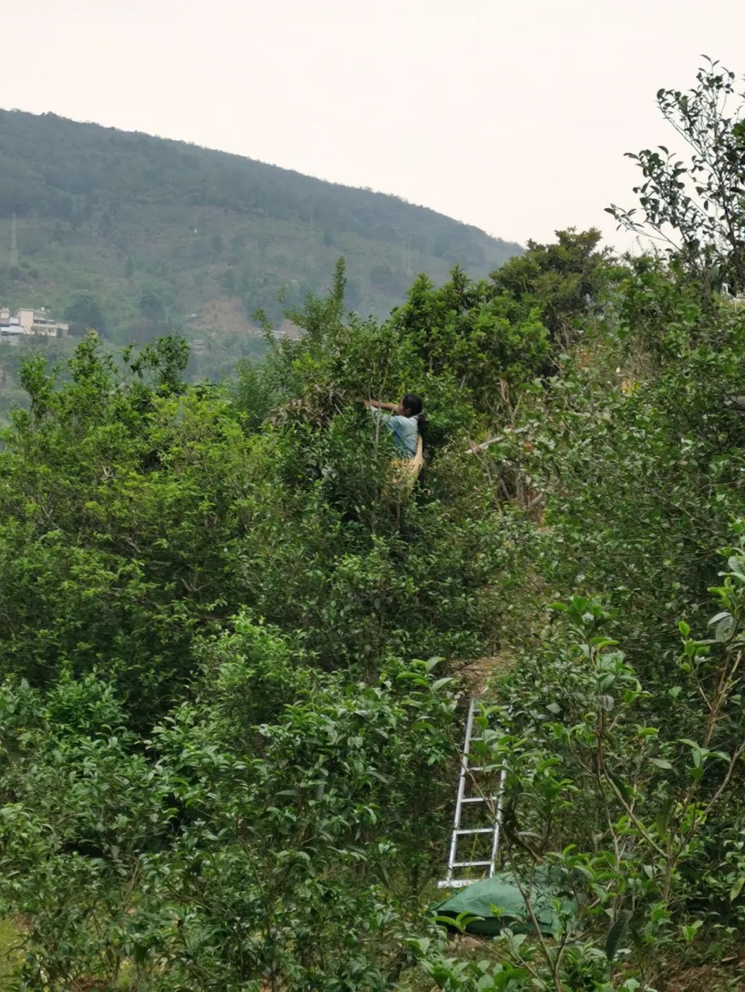 曼崗茶園的古樹(shù)樹(shù)齡都在500年以上,單株的樹(shù)齡在800年以上。樹(shù)干粗壯,蓬型較大,采摘的時(shí)候要用梯子輔助,盡量不破壞古樹(shù)。