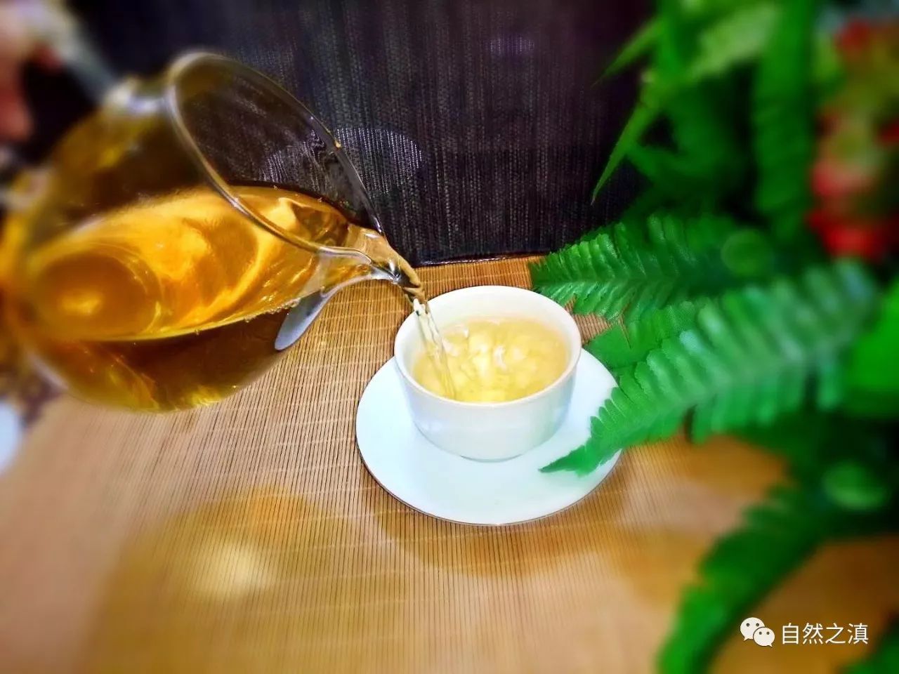 上好的賀開(kāi)古樹(shù)茶條索稍長(zhǎng),靜靜地沉在杯底,沸水過(guò)后,原本緊實(shí)的葉子開(kāi)始慢慢舒展開(kāi)來(lái)。片刻之后,倒入透明的品茗杯中,茶湯金黃明亮,香氣氤氳,悠然飄入鼻中,啜一口,濃醇回甘,細(xì)膩柔滑,陣陣蘭香充滿整個(gè)口腔..........