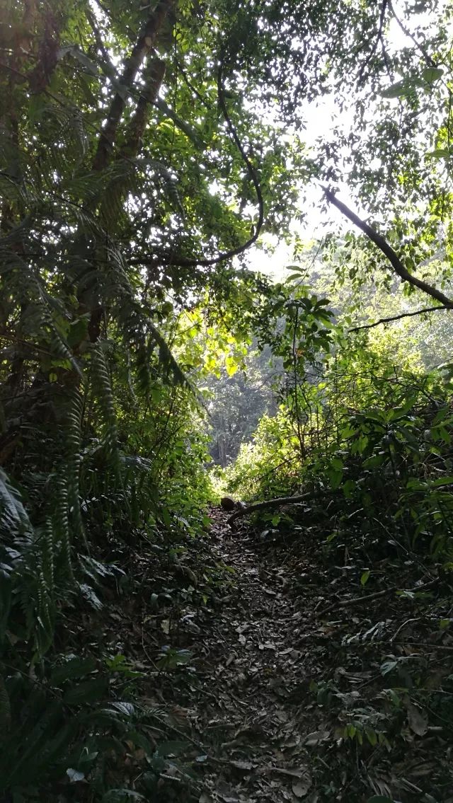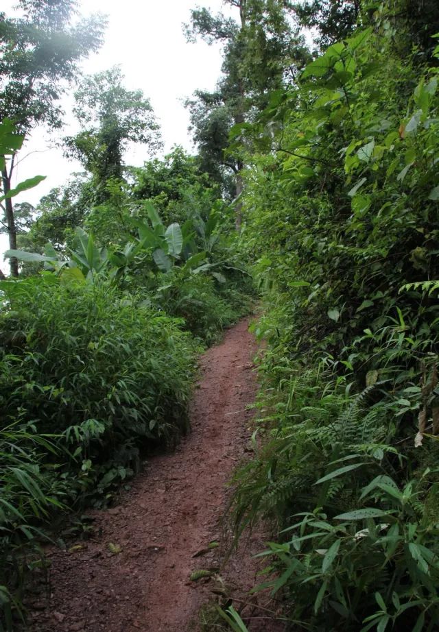 越往里走路就越窄了,我們就從這里開始徒步“入寨”,腳下的是松軟的黃泥土路,兩旁是茂密的參天大樹,樹蔭遮蔽處格外涼爽,放眼望去一片綠意盎然。