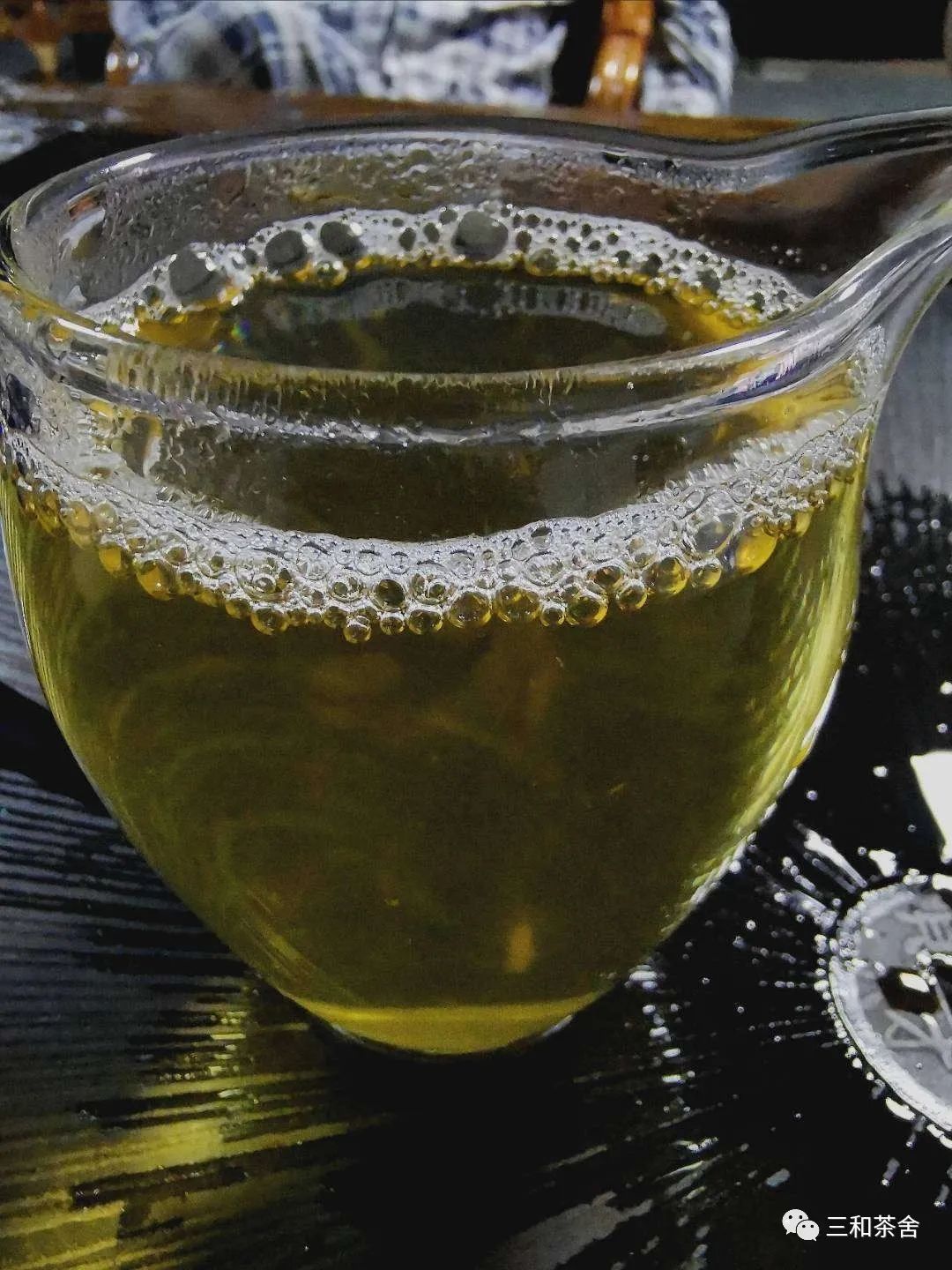 滿滿的茶皂素,果膠,這是春茶品質(zhì)的最高標(biāo)準(zhǔn)。(白沫沫,掛杯一直不散)。