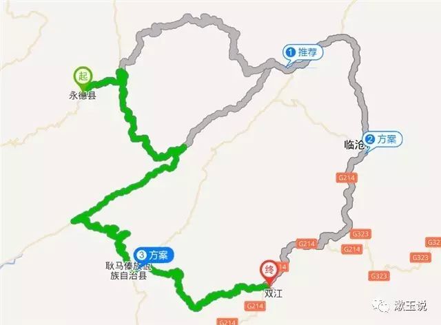 從永德出來,目的地雙江,最為便捷的路線是走施勐路、西景線,經(jīng)臨翔區(qū)抵達(dá)勐庫鎮(zhèn)。不曾想百度地圖還為我們提供了另外一種選擇,可以從耿馬繞行。