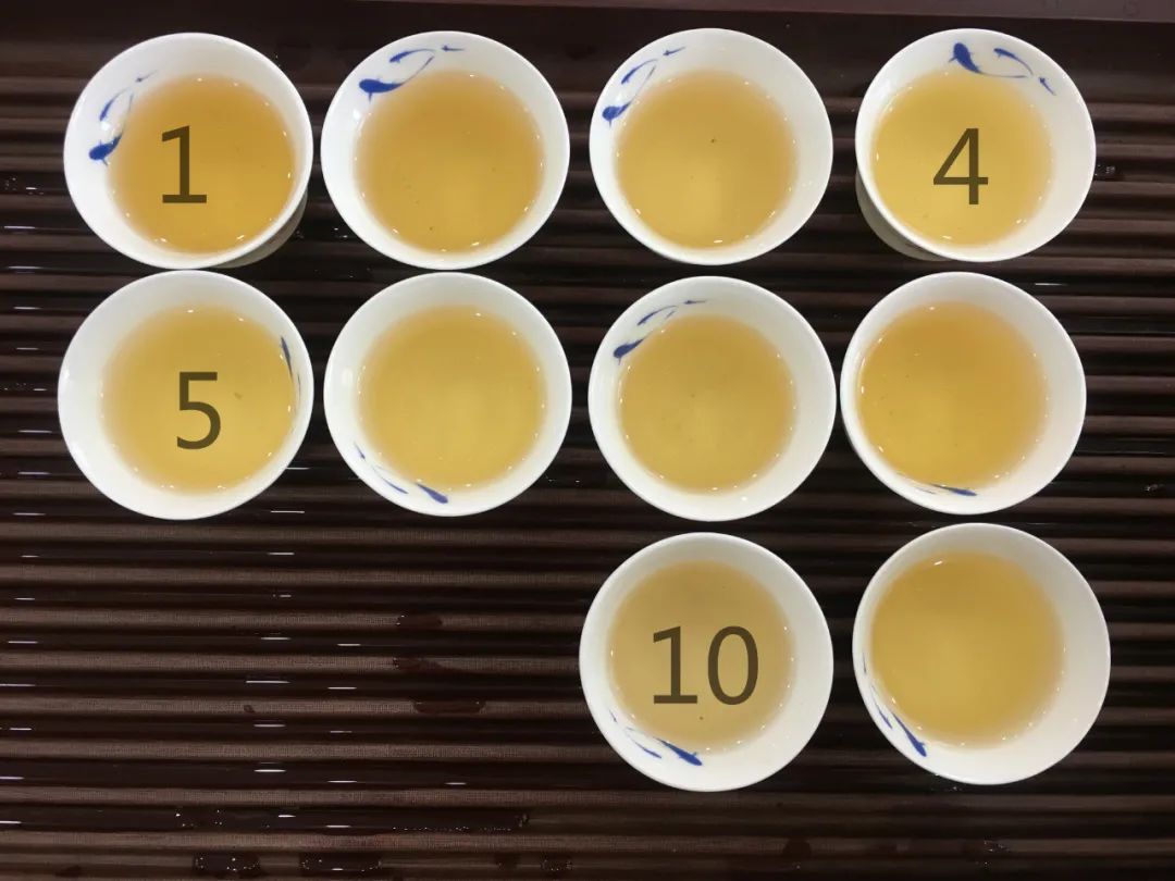 第10泡(5m):茶湯以清爽的甘甜味為主,無(wú)澀掛口現(xiàn)象。