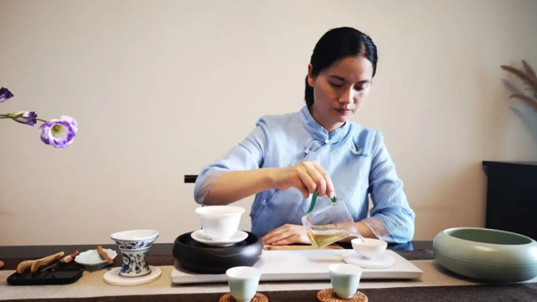 將茶湯從公道杯中倒入品茗杯,即可品飲。