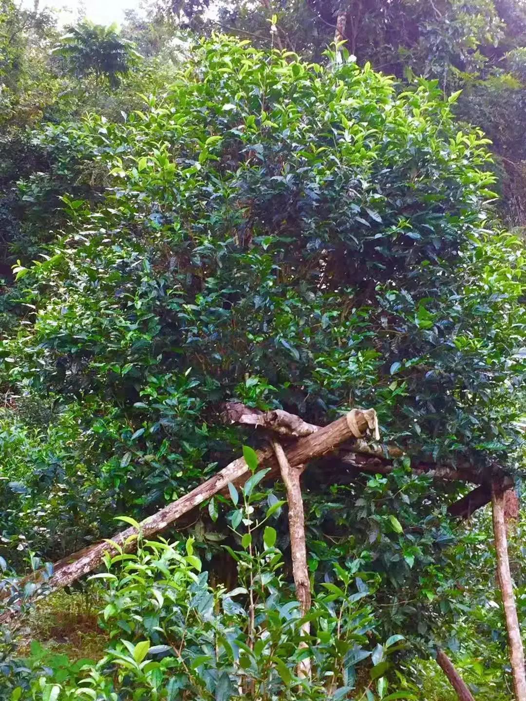 最大的幾十株栽種在屋后的地坎上,樹齡有近千年,其中一棵高11.7米,根部最大徑圍2.74米,是目前漫灣古茶山中發(fā)現的最大的栽培型古茶樹,枝繁葉茂,樹干蒼勁彎曲,猶如蛟龍出海,被稱為