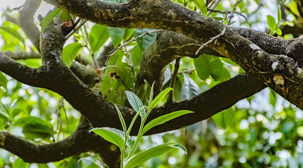 在茶地或茶園中,判斷茶樹(shù)樹(shù)齡最直觀的方法就是看這棵樹(shù)長(zhǎng)得大不大。因?yàn)椴铇?shù)生長(zhǎng)緩慢,生長(zhǎng)周期長(zhǎng),用當(dāng)?shù)厝说恼f(shuō)法叫“耐長(zhǎng)”,因此如果一棵樹(shù)長(zhǎng)得粗壯挺拔,枝繁葉茂,這棵樹(shù)十有八九就是一棵大古樹(shù)。