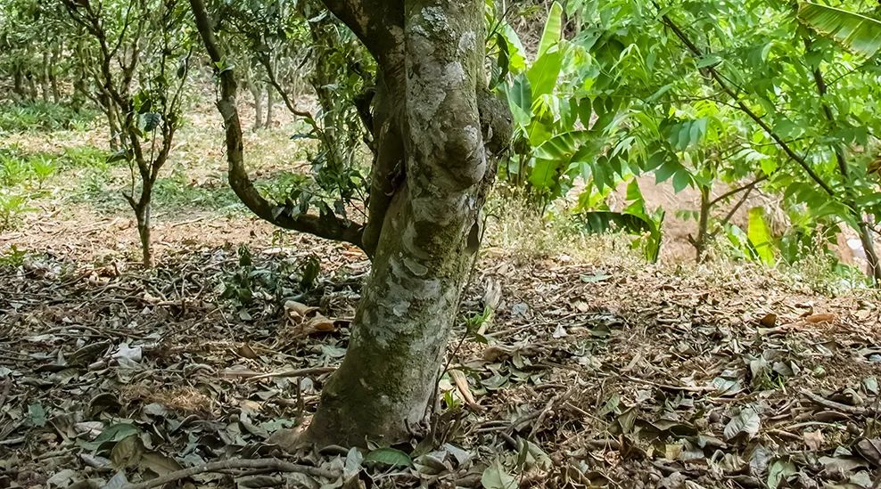 而在懂過(guò)的茶地中,隨便挑選一棵茶樹(shù),其樹(shù)干直徑幾乎都與我小臂長(zhǎng)度相當(dāng),還有相當(dāng)一部分茶樹(shù)的直徑要更寬。