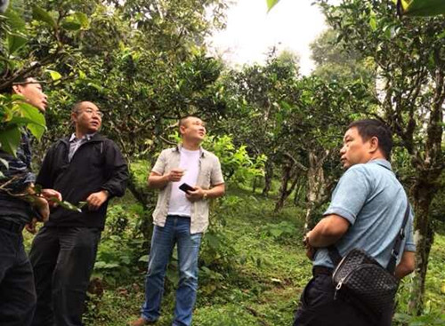 最大的幾十株栽種在屋后的地坎上,樹齡有近千年,其中一棵高11.7米,根部最大徑圍2.74米,是目前漫灣古茶山中發(fā)現(xiàn)的最大的栽培型古茶樹,枝繁葉茂,樹干蒼勁彎曲,猶如蛟龍出海,被稱為