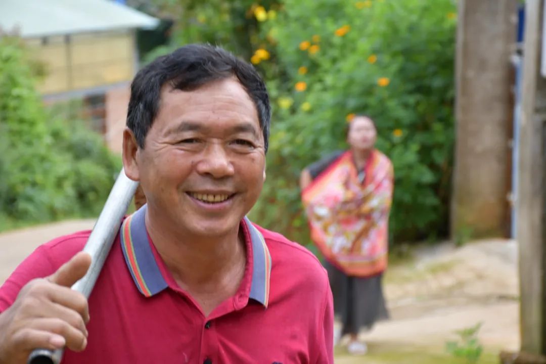 我們的向?qū)В来嫘〗M的阿途哥,您看得出他已經(jīng)66歲了嗎?他還是個(gè)能工巧匠,南糯山哈尼文化園里好多僾尼族以前的用具都是他的杰作