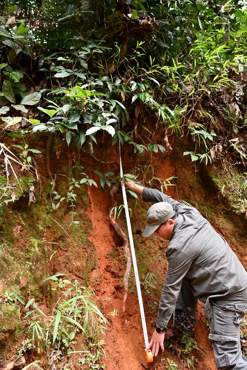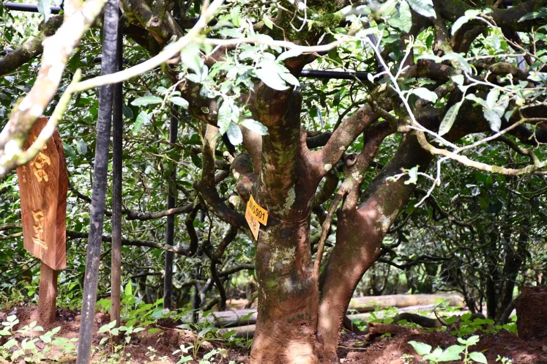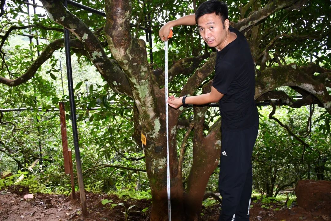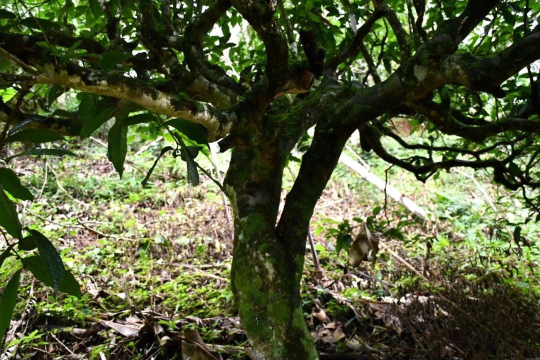 這棵半坡新寨的茶樹王,實(shí)地測(cè)量:海拔1470m,樹圍1.4m,樹高8.6m