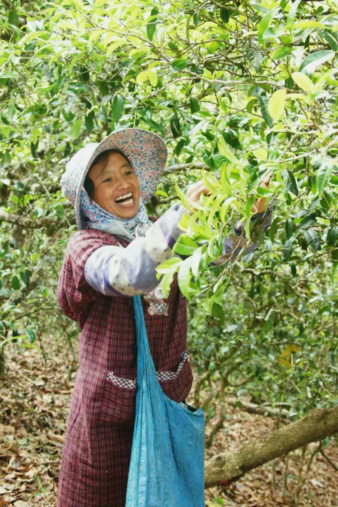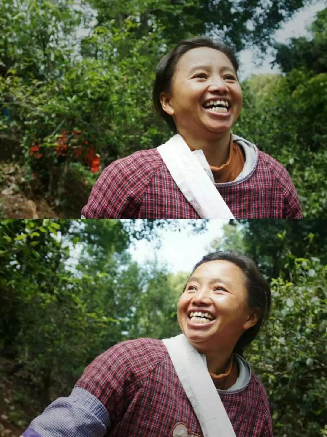 很多人在歲月中慢慢隱藏甚至丟失自我,變得不再簡單透明。但車滇姐姐恰恰相反,三輪車載著我們在茶山穿行的時候,車滇笑得像個在山里奔跑的孩子,燦爛明朗。給茶樹采青的時候,更是能從眼角眉梢讀出她對茶葉的愛。
